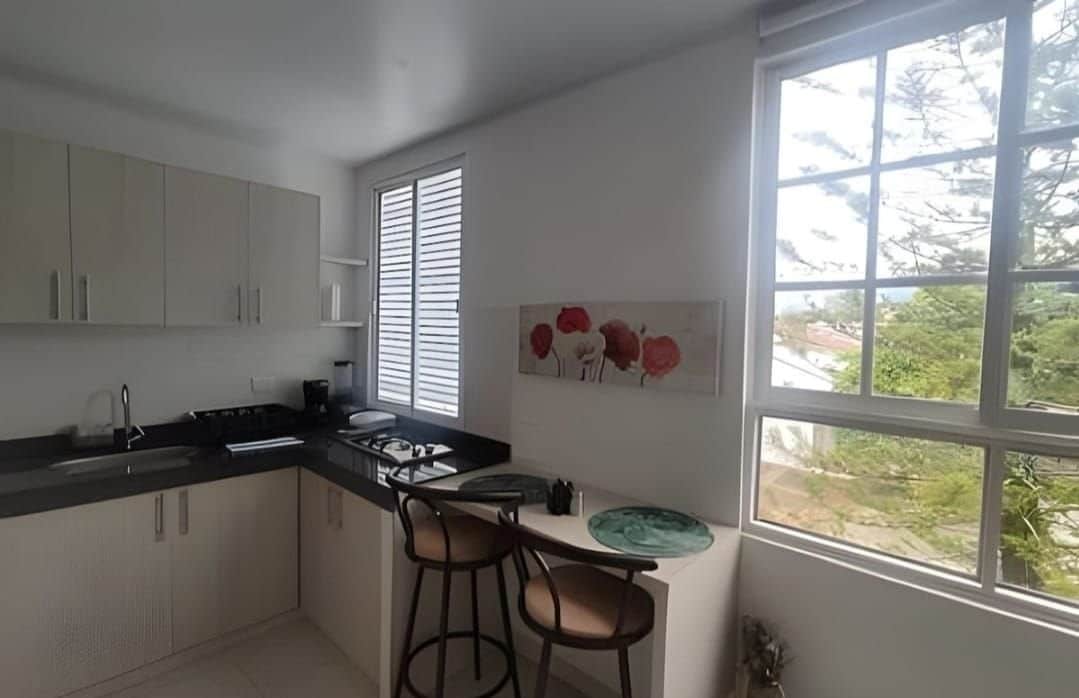 Hermoso Apartamento ubicado en una parte céntrica de la cuidad. En un espectacular edificio en el 6to piso con una maravillosa vista cuenta con una cocina integral totalmente equipada, moderna acogedora sala con TV, una hermosa habitación con aire acondicionado y un espacio en la parte externa para relajarte cuenta con una tina con hidromasajeadora y una mini cama para leer un buen libro. A5 min del cc mall plaza. Todo lo puedes encontrar en un mismo lugar tranquilidad, confort y estilo.