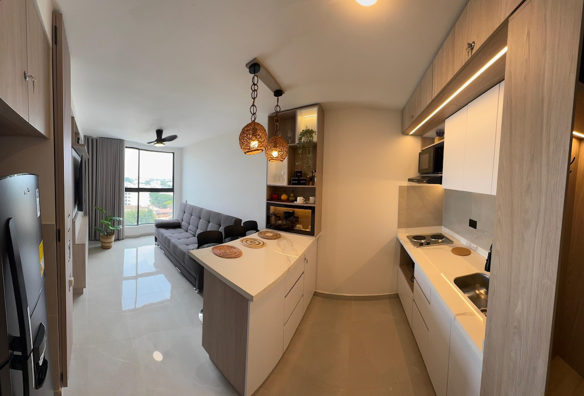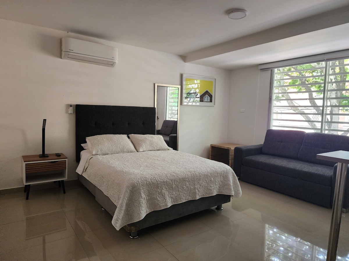 Encantador aparta-estudio ubicado en el corazón de cali. Cuenta con: CAMA QUEEN, colchón semi ortopedico, AIRE ACONDICIONADO, smart TV, ZONA DE TRABAJO, INTERNET DE ALTA VELOCIDAD, clóset. Baño completo, DUCHA CON AGUA CALIENTE. COCINA completa y dotada. SOFACAMA Cercano a las Canchas Panamericanas, Estadio Pascual Guerrero, centros comerciales como Palmetto Plaza, Mallplaza, Cosmocentro y a las principales clínicas de la ciudad como Imbanaco y Farallones.