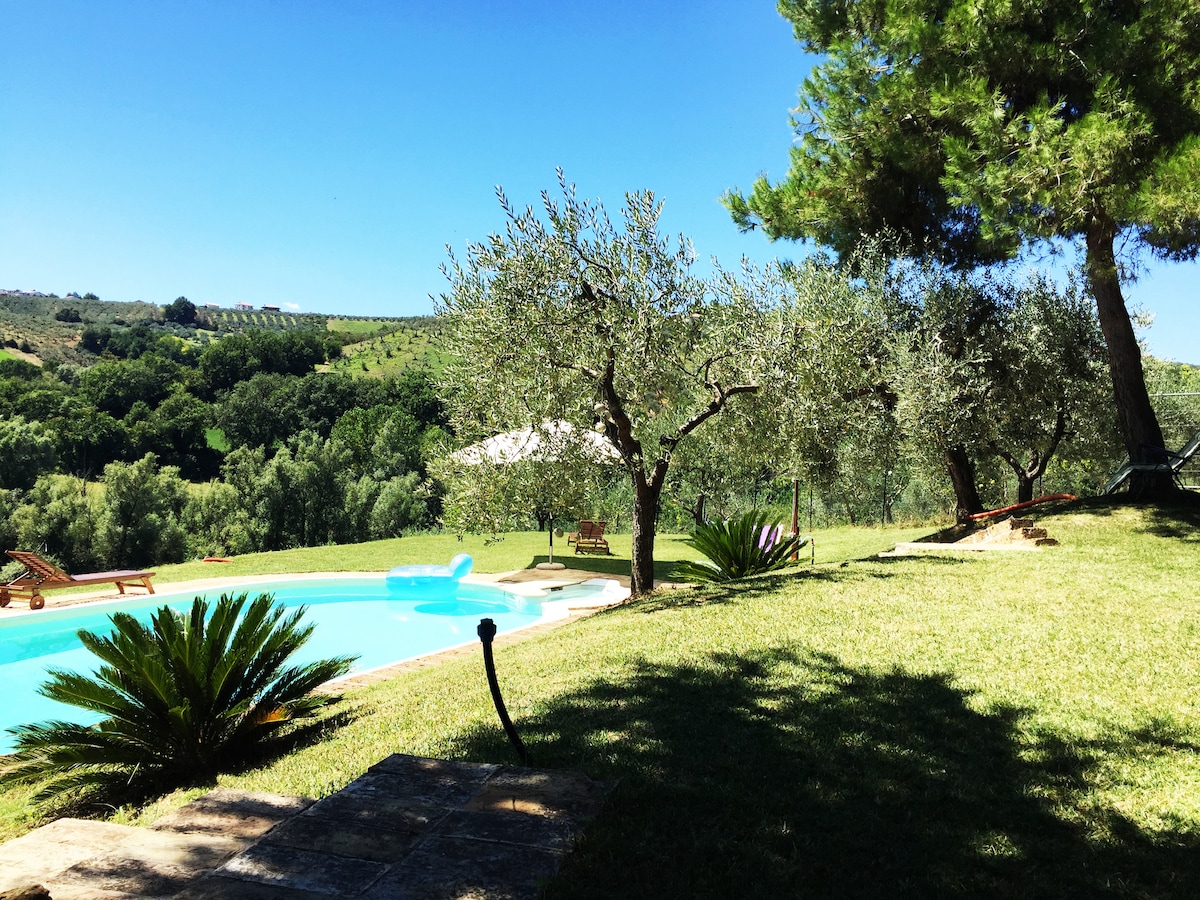 Villas is the perfect location for holidays with family and friends. A spacius country house with POOL use, only for you, immersed in the green of the Pescarese countryside. Near the villa are no neighbors. If you are looking for the peace and tranquility of the countryside, Villa is the right choice. The panoramic view of the Majella and Gran sasso, the hills offers moments of serenity. Just 13 minutes drive from the sea of Francavilla and Pescara airport and 40 minutes from the best mountain.