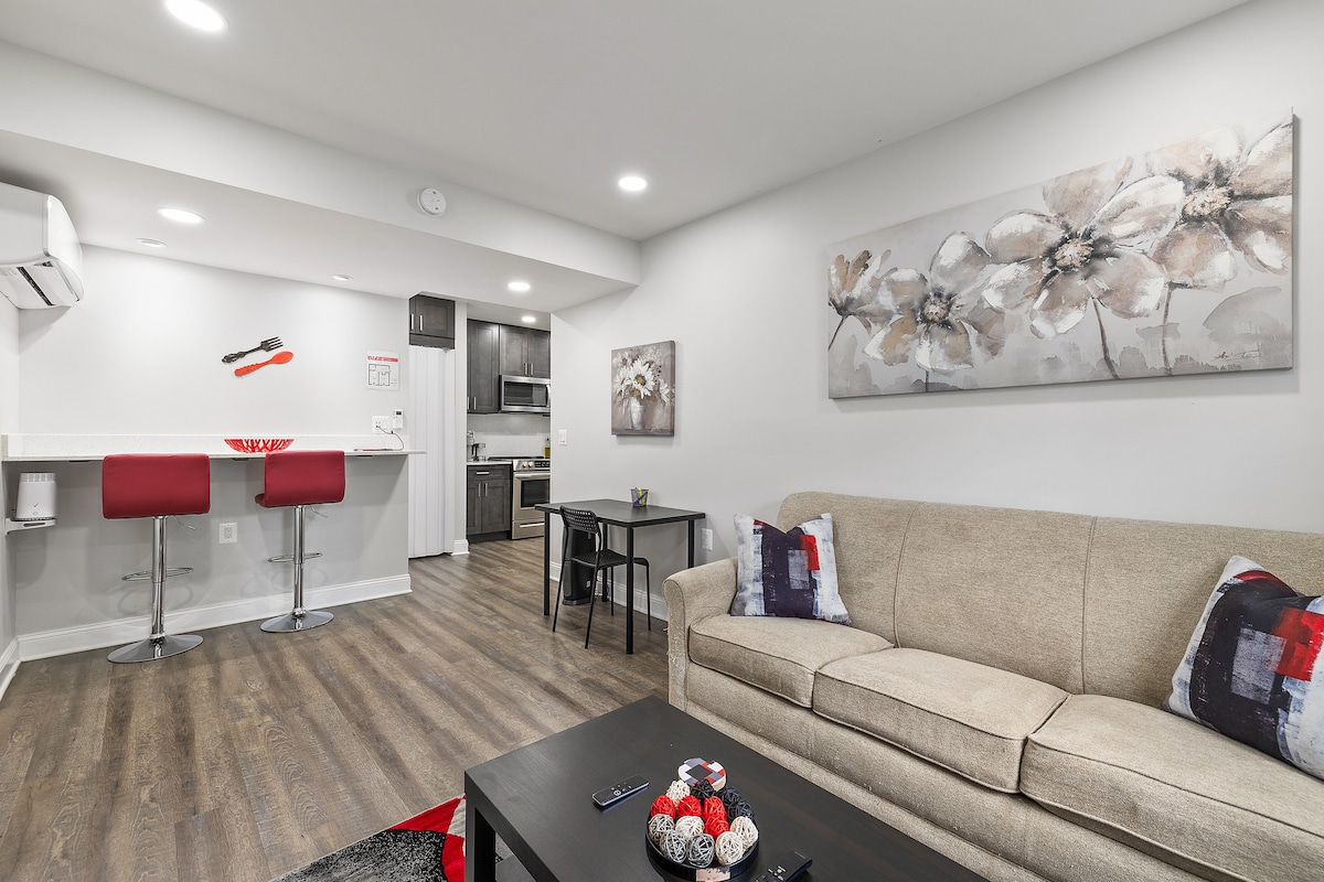 Cozy two-bedroom apartment in vibrant North East DC. Perfect for a comfortable stay, featuring modern amenities, spacious rooms, and easy access to local attractions. Conveniently located near attractions, public transit, and vibrant neighborhoods, it's the perfect base for exploring the nation's capital. Enjoy this dynamic, multi-cultural neighborhood and make your visit memorable! Embrace DC’s heartbeat with the possibility of muffled voices and footsteps from our lively neighbors above.