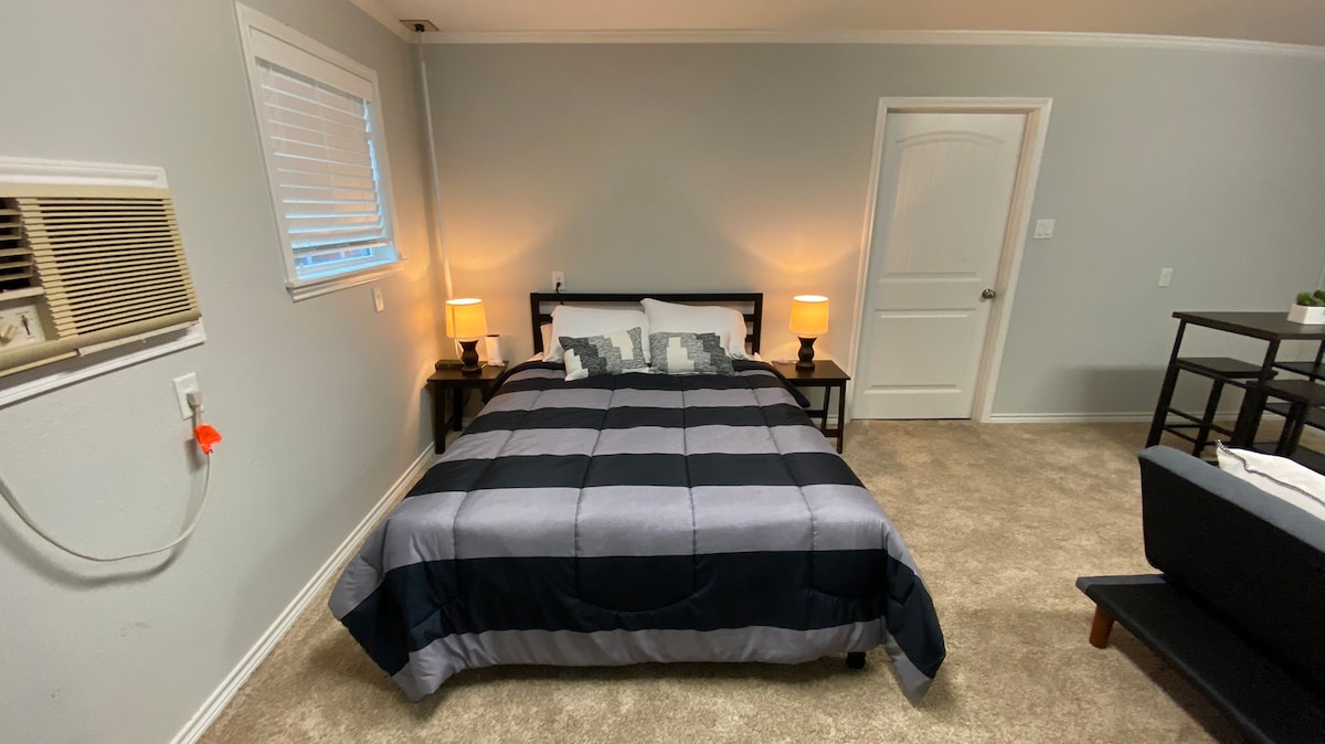 You'll have your own courtyard, a private entrance, and a cozy guest suite with a queen size bed for you and a loved one. Walking distance from A&M campus, Century Square and Northgate. 1.2 miles from Kyle field. Just a few miles from historic downtown Bryan. Enjoy the town, and then come back to rest in your own little hideaway. Wake up on Saturday morning to shop the farmer's market or enjoy a walk in Aggie Park.
