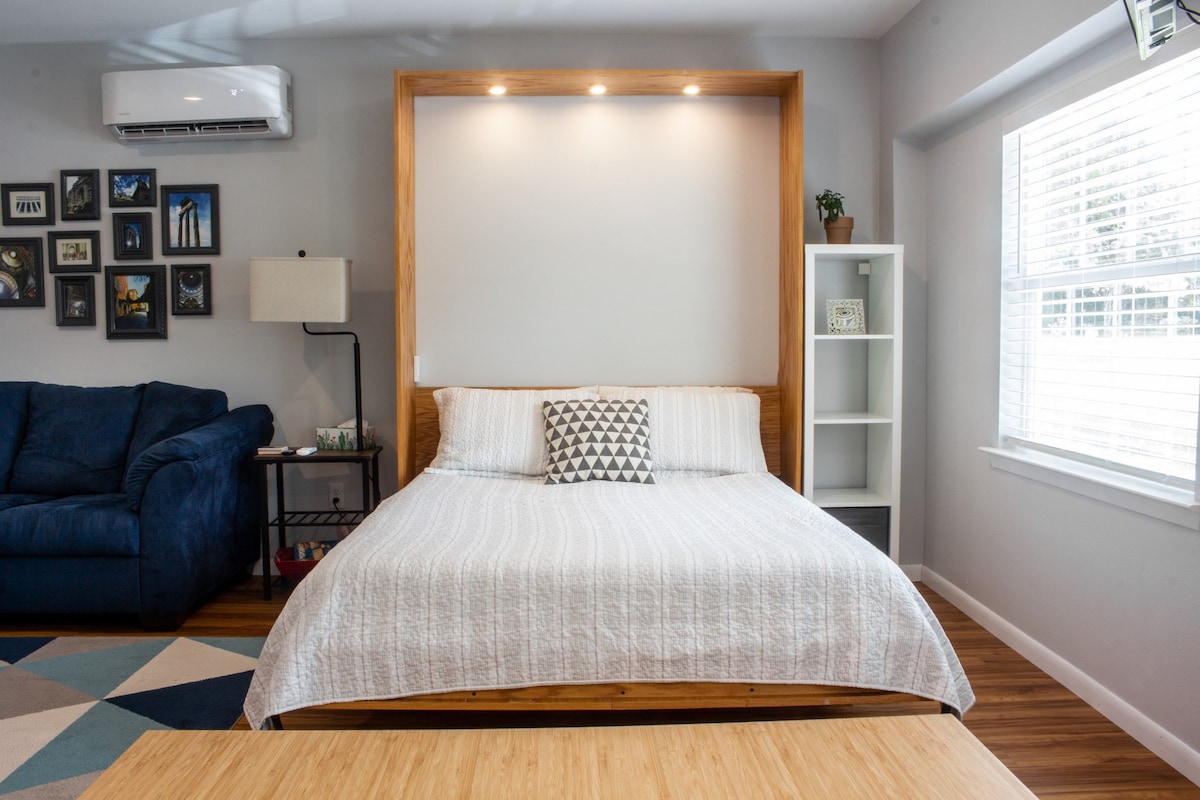 You'll have your own courtyard, a private entrance, and a cozy, efficient guest suite with a queen size bed for you and a loved one. Walking distance from A&M campus, Century Square and Northgate. 1.2 miles from Kyle field. Just a few miles from historic downtown Bryan. Enjoy the town, and then come back to rest in your own little hideaway. Wake up on Saturday morning to shop the farmer's market or enjoy a walk in Aggie Park.