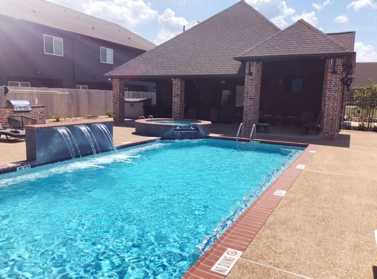 Easy access to Texas A&M University from this centrally located place. Walking distance to restaurants, parks, and shopping. It is a recently renovated townhouse. It has two bedrooms and a living space downstairs. The kitchen is fully functional. It has a shaded lovely backyard and a balcony upstairs. There is a community pool and hot tub. Each bedroom has a queen bed and there is a sofa bed in the living room. If needed we can provide air mattresses to accommodate more guests.