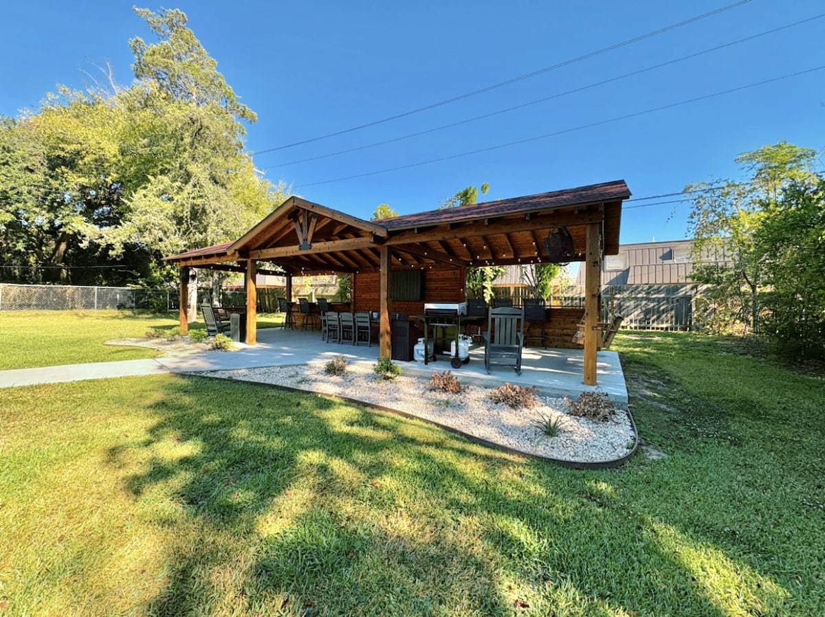 You will love the spacious layout, huge backyard with a covered pavilion, outdoor seating, BBQ, and swing, plus plenty of sleeping space for the whole group. The fully stocked kitchen with a gas stove and coffee bar makes cooking easy, while the private upstairs game/work room and EV charger add extra convenience. Just 1 mile from Texas A&M, this home combines comfort, charm, and an unbeatable location in the heart of Aggieland.