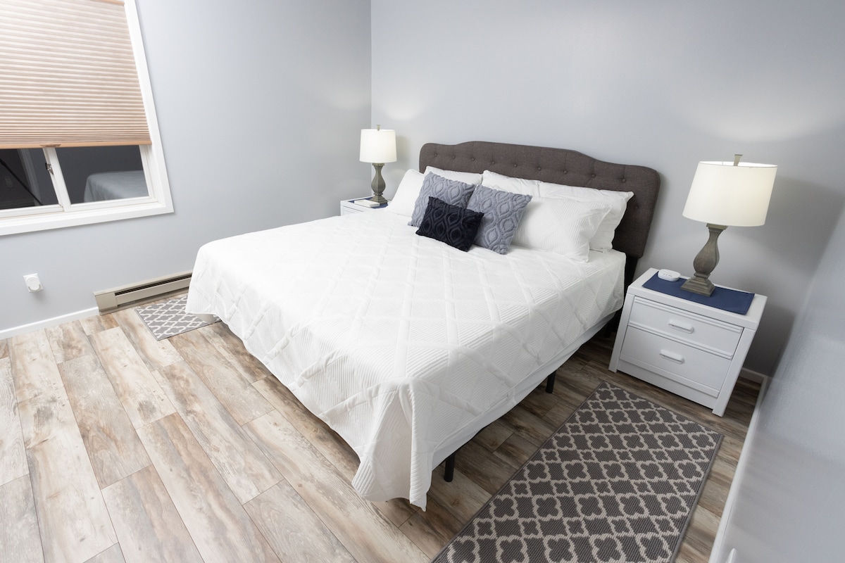 Luxurious & sophisticated, enjoy the modern amenities while staying in this beautifully updated, spacious suite close to downtown State College. Relax and unwind in this bi-level suite complete with a Nespresso Vertuo machine, king size bed and luxurious Ritz Carlton Purple Water toiletries. Conveniently located about .25 miles to Game Day Shuttles we are also about 1.5 miles to downtown and Beaver Stadium.