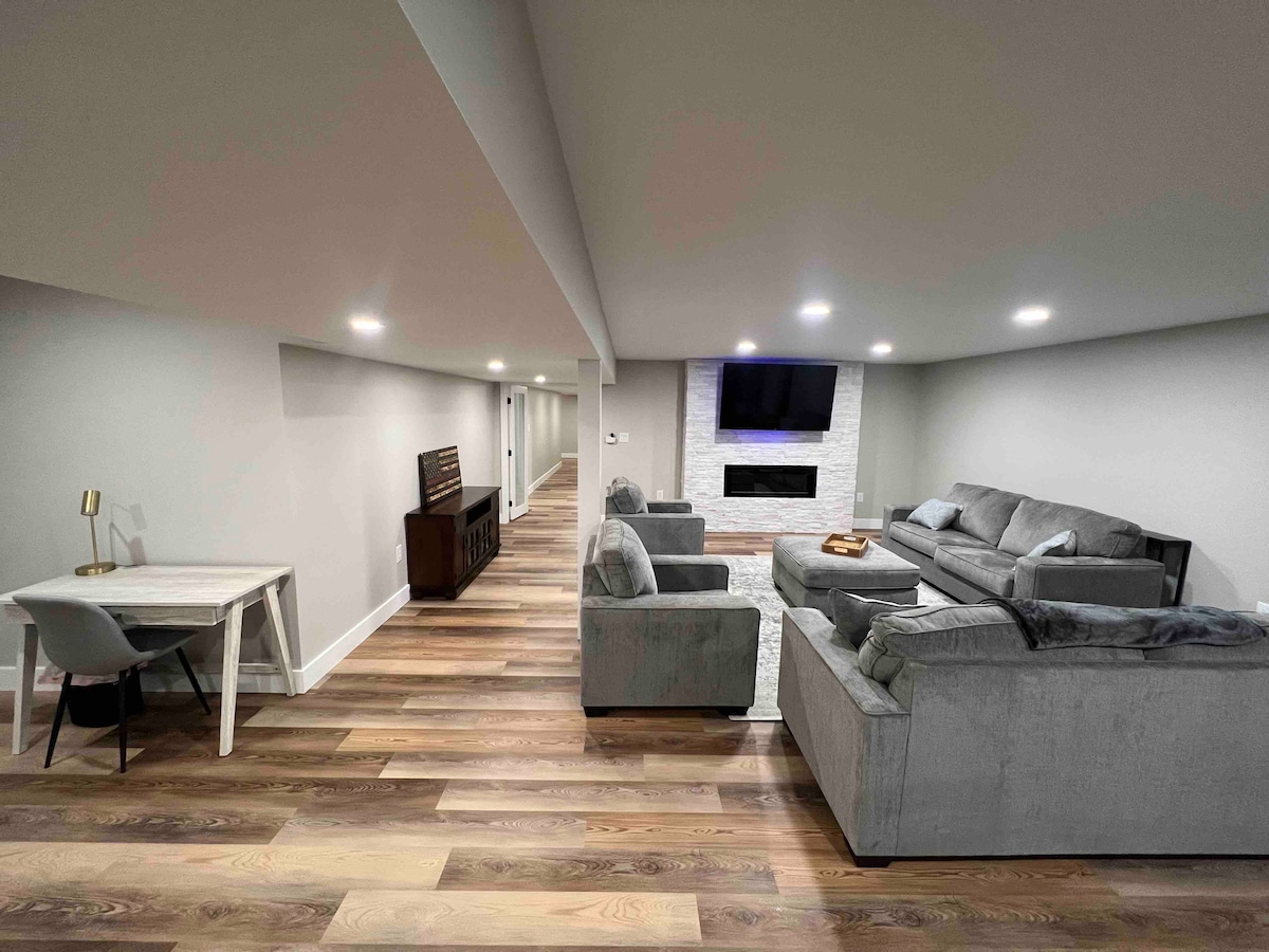 For rent is a new, fully-furnished basement guest suite with a private entrance, 2 bedrooms, bathroom, full kitchen, wall mounted 55" smart tv, wifi. This property is walking distance to Beaver Stadium or the Bryce Jordan Center via University drive (approximately 1.1 miles). Our ideal group varies. It could be 2 couples (young or old), parents with kids, or just a few friends. The apartment comfortably sleeps 6. Located in State College Borough. ONE TURN to get to the stadium!!!