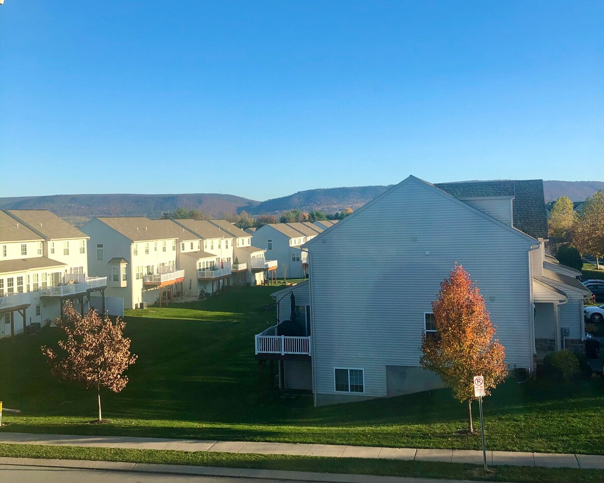 Enjoy both mountain and meadow views from this renovated 3 bedroom townhouse end unit, complete with full kitchen/sunroom, living room and deck. Smart TV, fast wifi and 2 medium car driveway parking on right hand side only. It's a perfect place to stay for a relaxing getaway, sporting events, concerts, visits to local parks, historic landmarks & more. Only 2 miles to downtown Bellefonte and 8 miles to Penn State University Park campus. Outdoor security cameras in front and back of property.