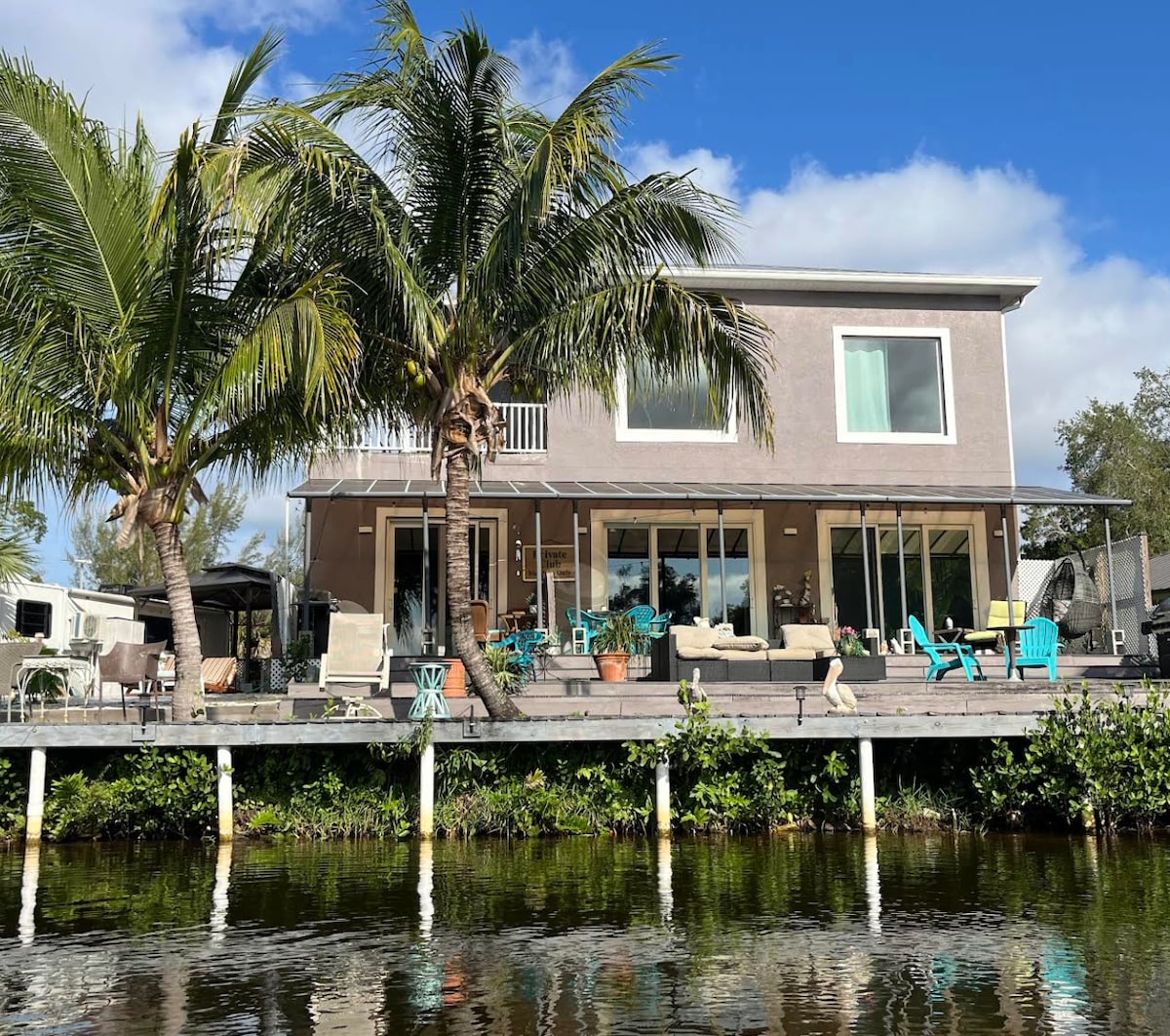 A renovated mid century modern house with natural peaceful views out of every window and slider. No detail spared, as it was going to be our forever home. Located on an ocean access canal, extremely safe, quaint and friendly neighborhood, just off 41. The backyard has a large shaded sitting area with a gas grill and fire pit. The dock hangs over the water with seating and swim ladder. 2 tandem kayaks, fishing rods & tackle, adult & children’s bicycles, beach chairs, and so much more.