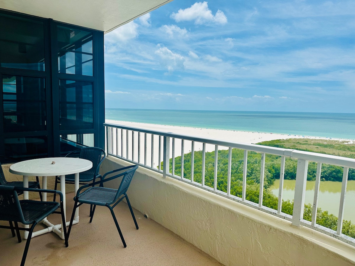BEACHES ARE OPEN! Beautiful Views, large unit, Enjoy the sun, beach, and excitement of Florida. Lovers Key State Park, beautiful beaches, hiking & biking trails, Ft Myers Beach, white sand, many activities. Views of the gulf & bay area. Exercise room, wifi, great swimming pool- the beaches & trails you come to Florida for. Ft Myers beach has the white sand you think of when visiting Florida. The Gulf Coast Beach, and Lovers Key State Park are there for your enjoyment. Great place for Memories