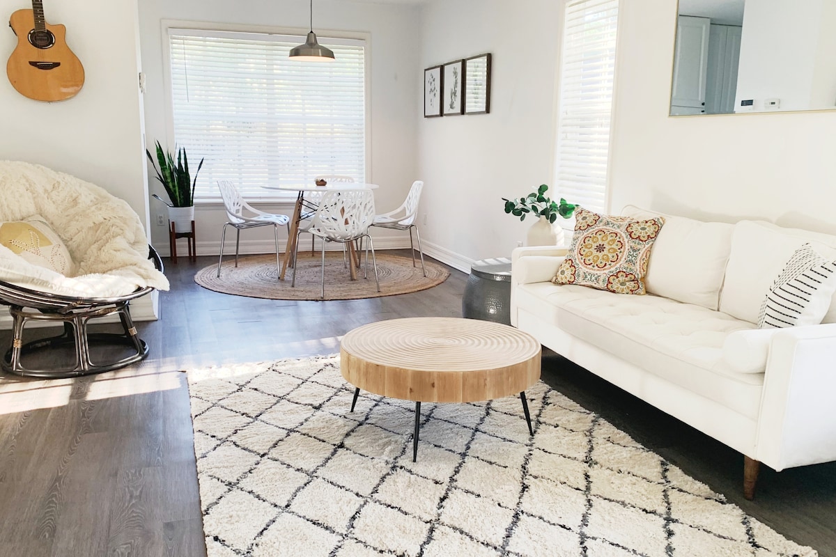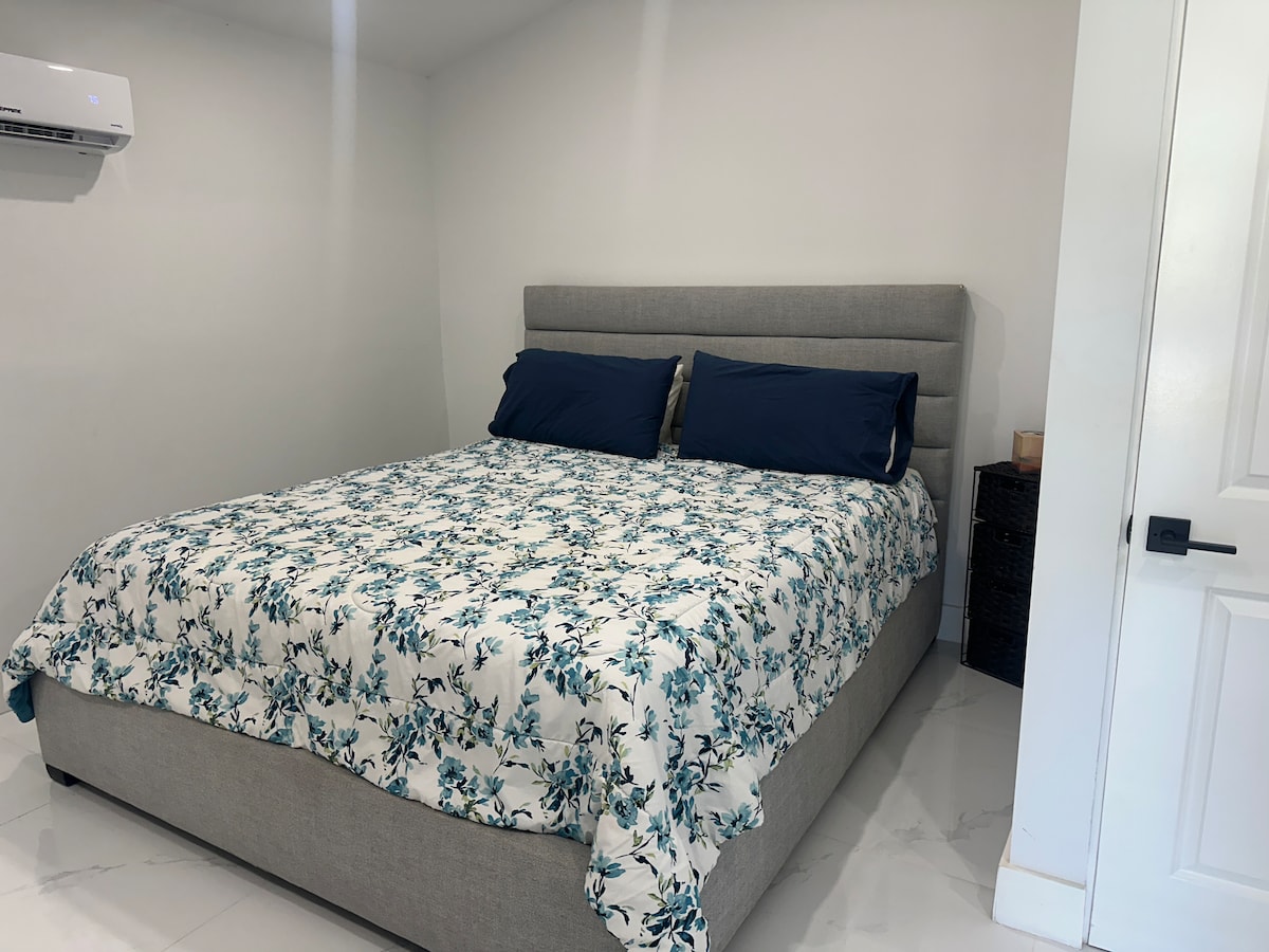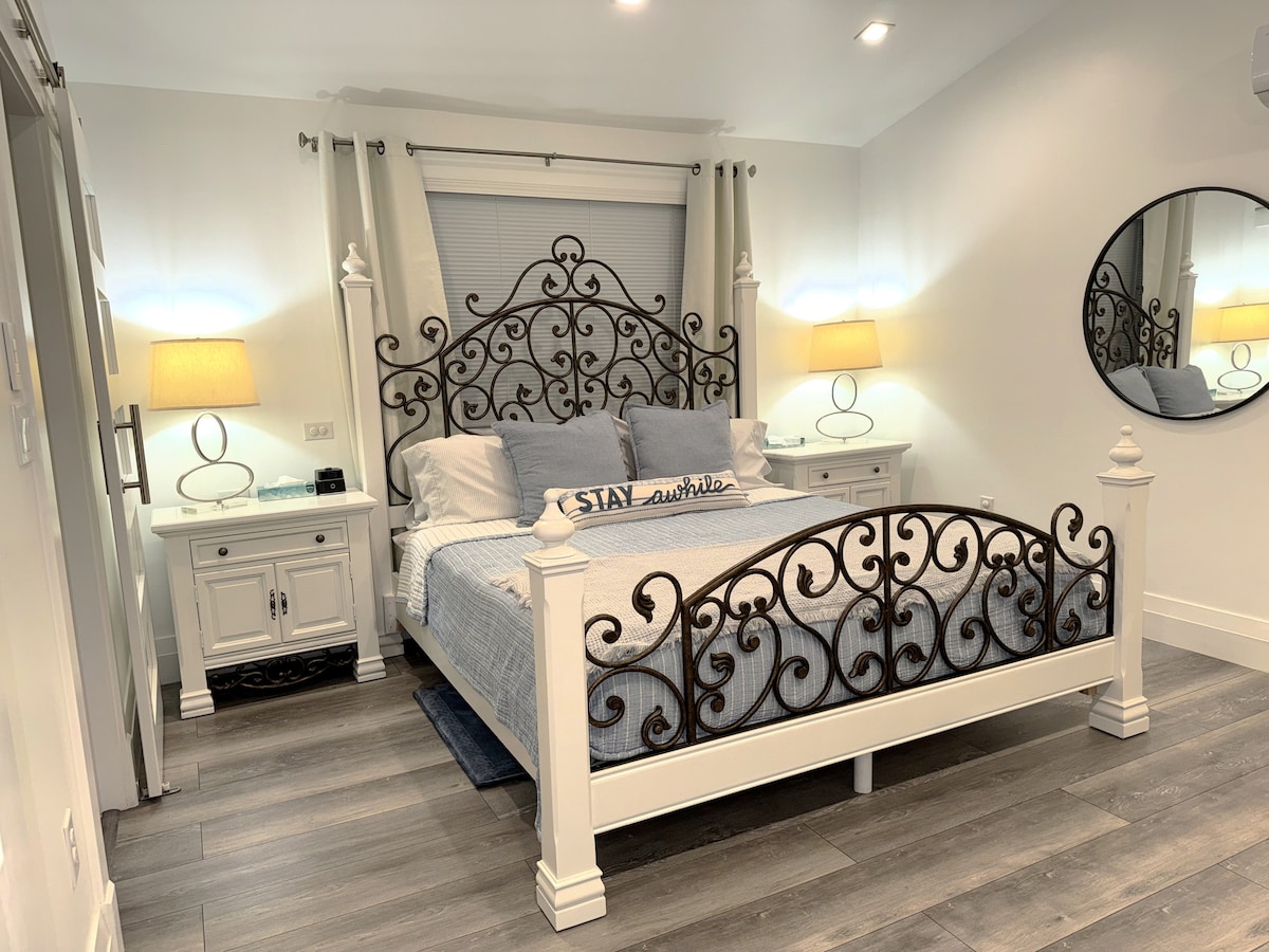 Forget your worries in this spacious and serene space. This is a complete studio apartment with private entrance. Outdoor sitting area Smart TV w/ Netflix, Disney+ Queen sized bed w/ luxury mattress Closet & dresser Walk-in tiled shower w/ full vanity Incl. Bath Amenities & Hair Dryer Kitchenette w/ fridge & freezer Keurig w/ complimentary coffee Induction cooktop Microwave Toaster Oven/Air Fryer Washer/Dryer Beach towels, Chairs, Umbrella Parking for 1 car Short drive to beach, shops, dining