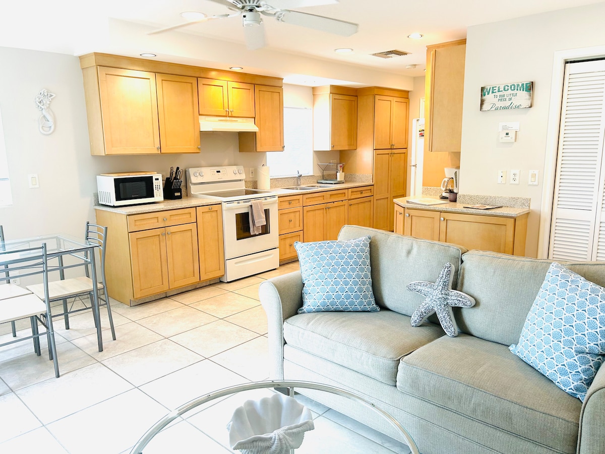Come and stay at the only location on the island with the one of a kind exceptional view of the Everglades. Step right out to the waters edge of the Goodland Bay, where you will be able watch the dolphins right from your porch and private patio. The cottage has great sliding glass doors that hold the magnificent view of the water, right from the living room. A freshly remodeled fully furnished, up to date, 1 bedroom cottage. Boat Parking, Dockage, kayaks, and bikes available.