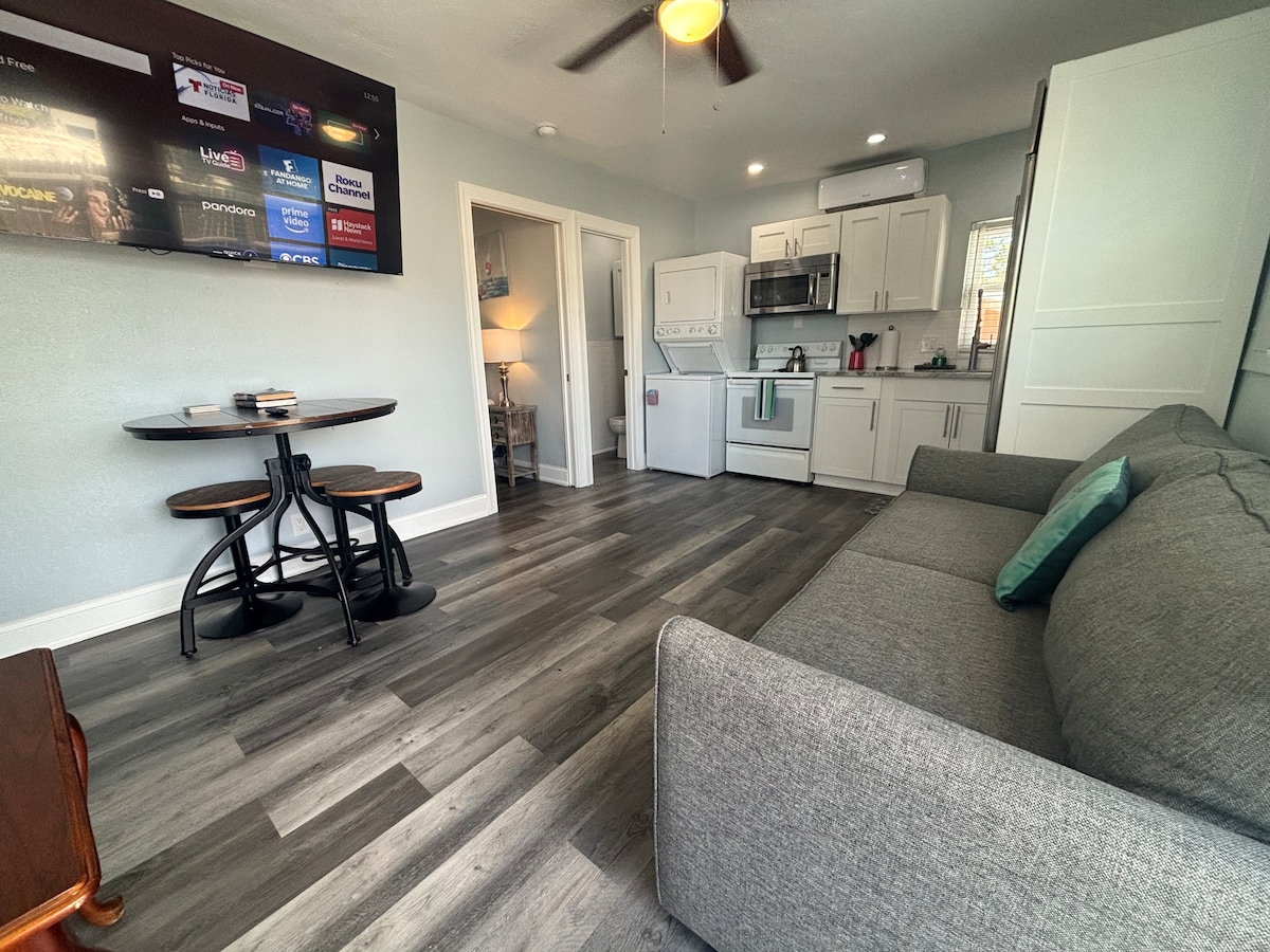 全新套房,带洗衣机,位于河畔,距离海滩1.3英里,可住4人