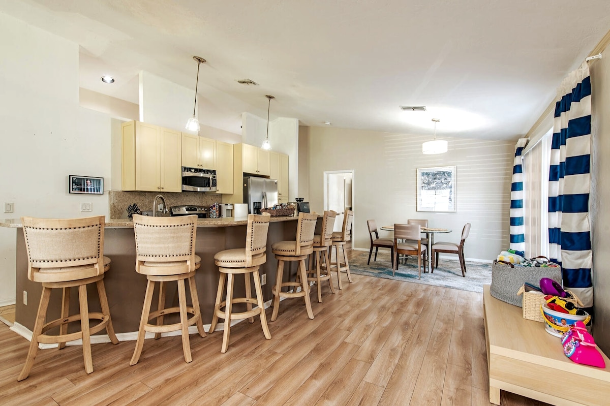 Enjoy a large open 1st floor flat (no stairs) with a pool table, 65" TV, full kitchen, and dining table. The backyard pool, dock and patio are in a fenced-in area for fishing, grilling, and playing with your pets. Walk to Tigertail Beach, grocery store and the best restaurants on Marco. Water sports, Everglades tours, shopping, farmers market and art fairs are all within a short walk. There is a 2nd floor that only my family uses; however, we don’t use it when hosting guests (100% privacy).