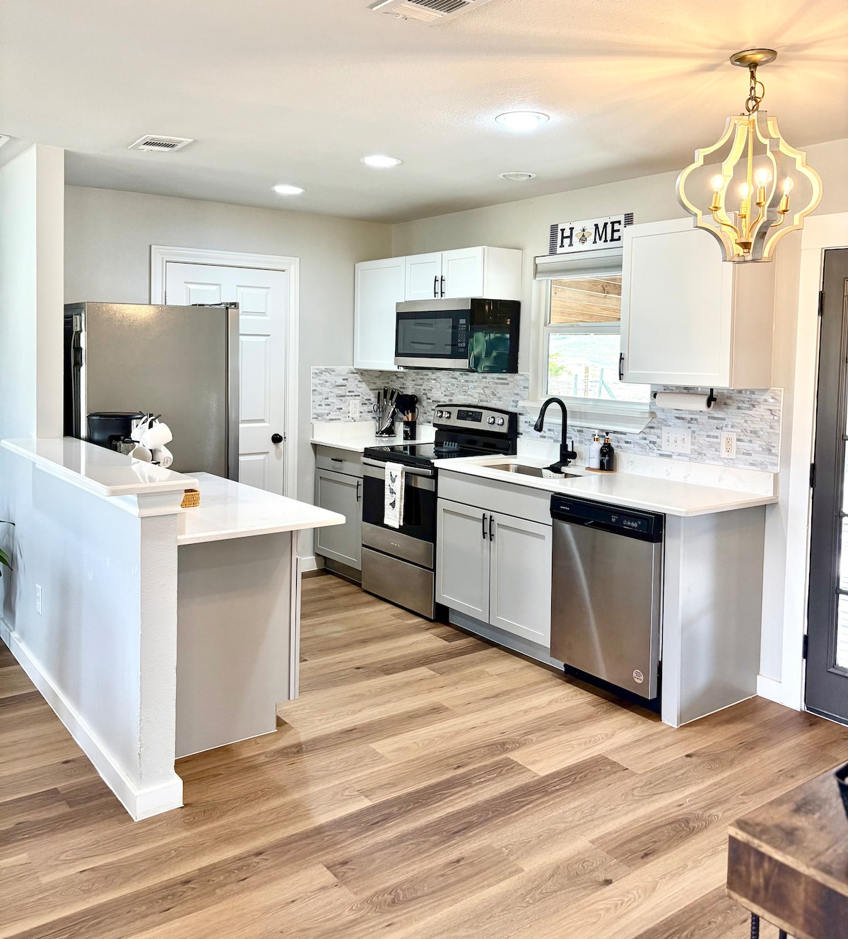 Relax in our new barn house that is attached to our recently renovated barn. Enjoy gorgeous sunsets and sunrises. The barn house has a full kitchen, full bathroom and a full size washer/dryer. 2 Kings & 1 Queen beds. The suite opens up to the renovated 3000 sf party/play barn. Enjoy this shared barn space, private rental of barn for an additional fee. There are 2 large TV’s, Sonos sound system, corn hole, darts and 10 acres of fun. May rent less bedrooms for $25 off per room not rented.
