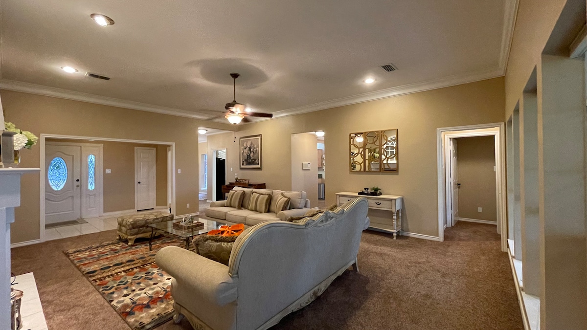 🐝Welcome to BeeMckinney🐝 Book our relaxing and spacious home for you and your entire group. Featuring 5 bedrooms, 3 bathrooms, 2 living rooms, 2 dining rooms, full equipped kitchen, an amazing backyard with pool in a 5-acre lot. A unique combination of relaxation, fun, country vibes and beautiful sunsets. *Room 1: One King Bed *Room 2: Two Twin Beds, *Room Three: 1 Queen Bed, *Room 4: One Queen & Two Twin Beds, *Room 5: One Queen & Two Twin Beds. Private entrance with gravel driveway.
