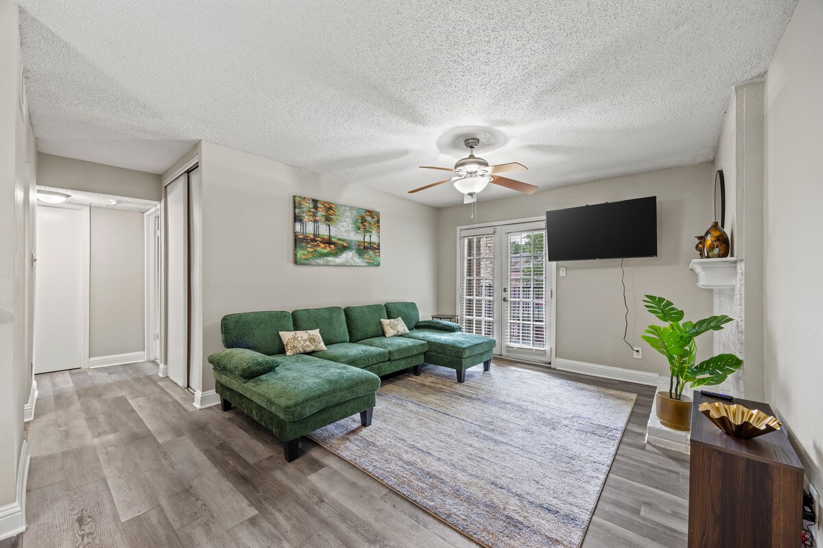 Like new space incl. 2 bedrooms w/ KING SIZE BEDS, 2 bathrooms, loft w/ triple bunk beds, full kitchen, laundry, pool access, and more. Private entry & parking. Location offers easy access to I-75, walking distance to several food places, close to Towne Lake, parks, disc golf, tennis, pickleball, & downtown McKinney. Enjoy perks not often found such as: UNLIMITED hot water, driveway parking, EXTRA WIDE doorways, zero entry front, 4 smart TV's, WiFi, 2 completely separate living/sleeping spaces.