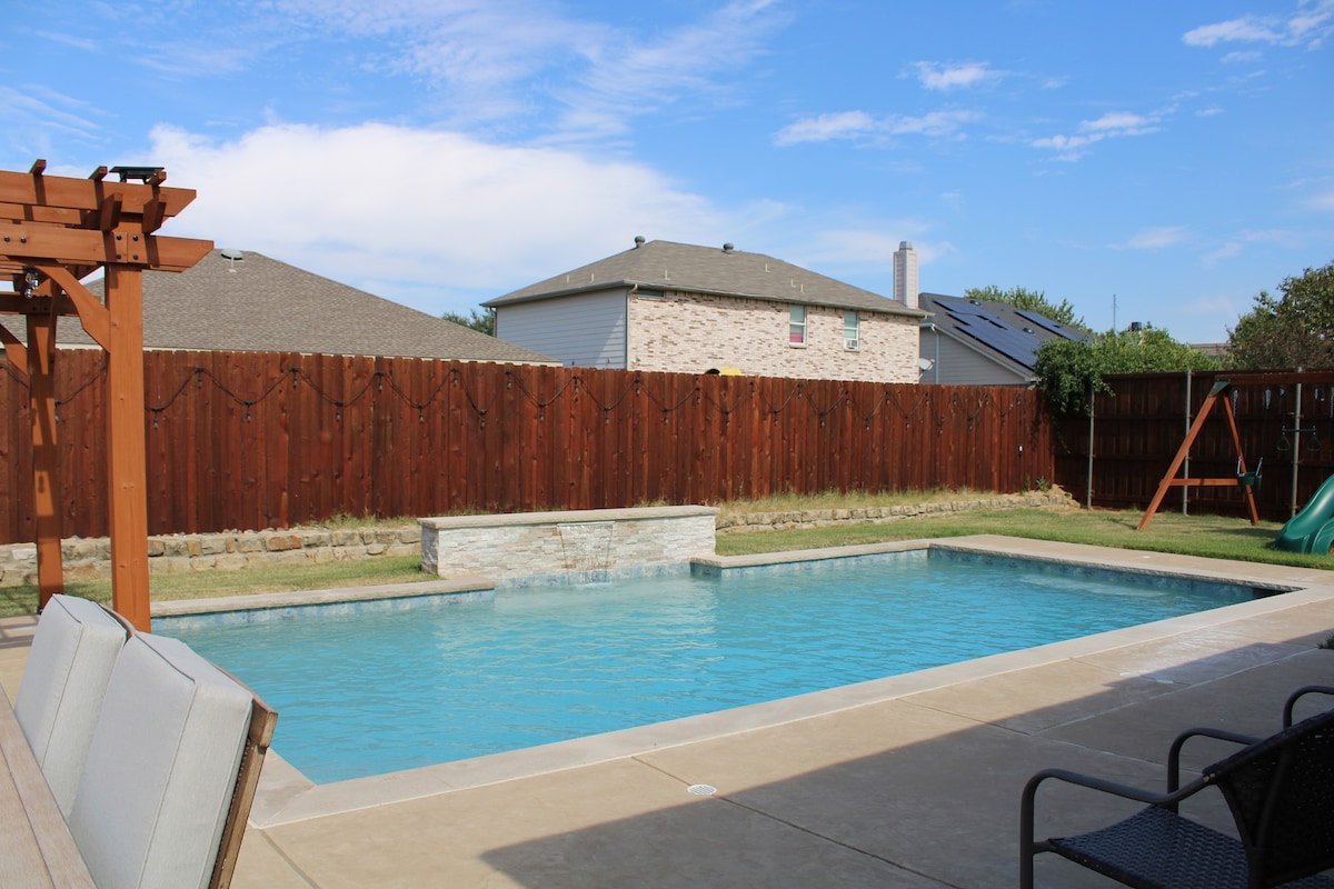 Relax in your private pool after exploring Legacy West, then grill dinner under the Texas sky. This spacious Plano getaway is perfect for families, business travelers, and remote workers alike. Centrally-located Home. Legacy west shopping center and restaurants are just 10 mins away! There’s a total of 6 twin beds and a king bed in the master bedroom. It is the perfect family space that everyone can enjoy comfort and privacy but also family time all in one home.