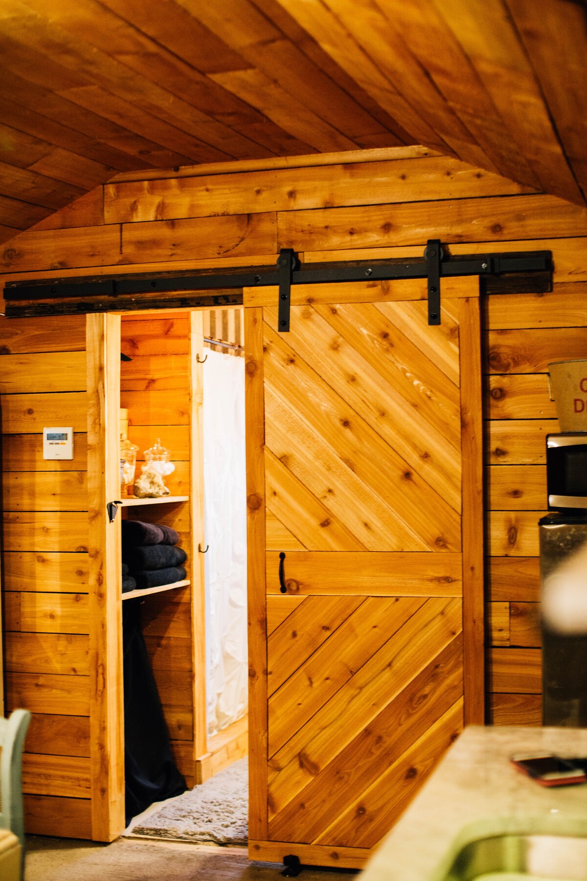 Private guest suite with private entrance and bathroom. Clerestory windows provide abundant daylight. Loft style sleeping arrangements with queen size bed. Additional sleeping space on full size sleeper sofa. 42" TV with antenna and Roku Streaming. Kitchenette with fridge, coffee, microwave, and induction cooktop. European style bathroom with curbless shower and wall hung toilet. Tankless water heater for unlimited hot water.