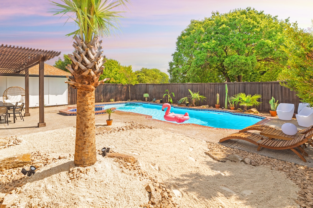 Experience the pinnacle of luxury living in Plano/Frisco with our exclusive property, offering a comprehensive array of amenities under one roof. Nestled in our backyard oasis is a unique resort-style hot tub, complete with plush sofa sets and a covered pergola for ultimate relaxation. Entertainment options abound with a diverse selection of arcade games, an air hockey table, table tennis, surround sound theater room and a trampoline, ensuring endless enjoyment for your family or friends.