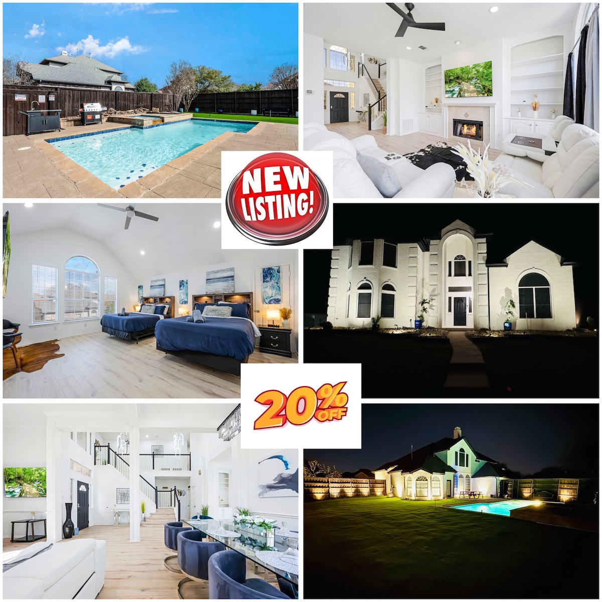 For an unforgettable vacation or productive off-site, bring your Family, Friends or Team here. Just minutes from The Star, Plano's Legacy East & West, GrandScape, Dr. Pepper Ball Park, Stonebriar Mall, Frisco Soccer Complex, PGA, lots of great restaurants, shopping & entertainment. A stunning 6 Bedroom, 2 story home with a splendid Pool & Spa, ample in & outdoor space. The home amenities include a full kitchen, 16-seater dining, high-speed WiFi and 5 Smart Tv's, an outdoor grill, and much more.