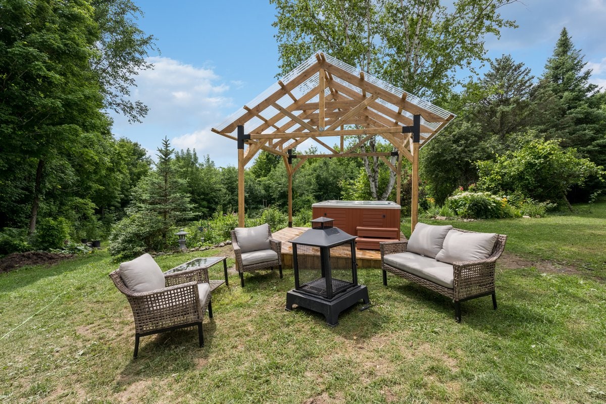 An enchanting, private, 4 season retreat in the escarpment atop Beaver Valley, metres from a beautiful section of the Bruce Trail. The property has nearly 5 acres with cut trails, hammocks, and a sports field. It has two buildings connected by a large deck that has outdoor furniture and a BBQ. The sauna is just feet away. The buildings are fully outfitted offering a comfortable base for daily adventuring, or a stay put retreat. This spot is ideal for a family, or a couple's getaway.
