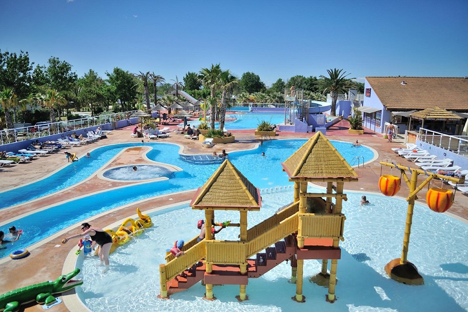 Ce camping de haute qualité est idéalement situé (plage, étang, commerces, centre de thalasso) comporte boulangerie, supérette, restaurants, coiffeur,docteur.Vue sur l’étang avec ses flamants roses et sur le mont Canigou,à 30 mn de l’Espagne,10 mn de la gare,de l’aéroport de Perpignan.De nombreuses activités, le club enfants 1-15 ans .Il a son parc aquatique piscine chauffée couverte, toboggans pistes de glisse,pataugeoire,SPA, splash, terrains pétanque ping-pong salle de sport aires de jeux.
