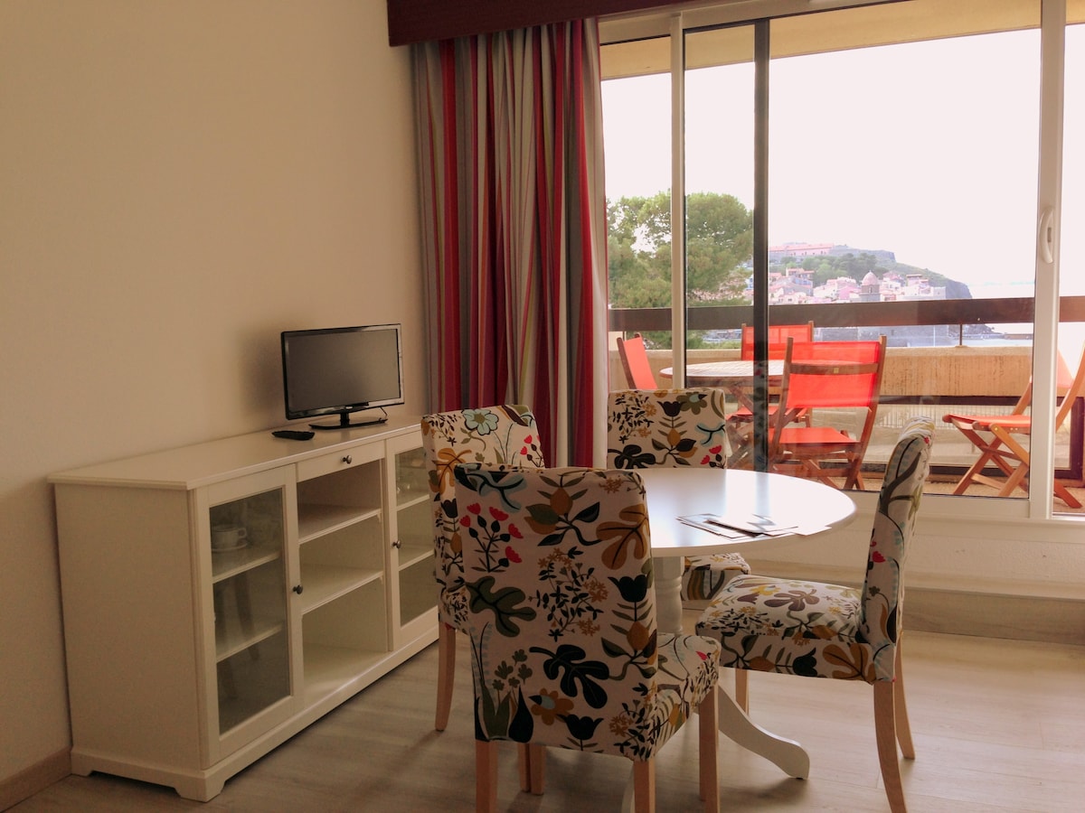 LES PIEDS DANS L’EAU ! Beau T2 situé dans un petit immeuble au calme d’une capacité de 2 à 3 personnes, refait entièrement à neuf et très confortable avec vue panoramique sur mer. Parking gratuit à proximité. Il y a 3 plages à proximité de l'appartement à 5 mn à pieds, nichées dans de petites criques. L'une en galets et les 2 autres en sable (chaussures conseillées) Vous aurez la possibilité d'accéder à beaucoup d'autres plages sur Port-Vendres en voitures ou lors de randonnées pédestres.