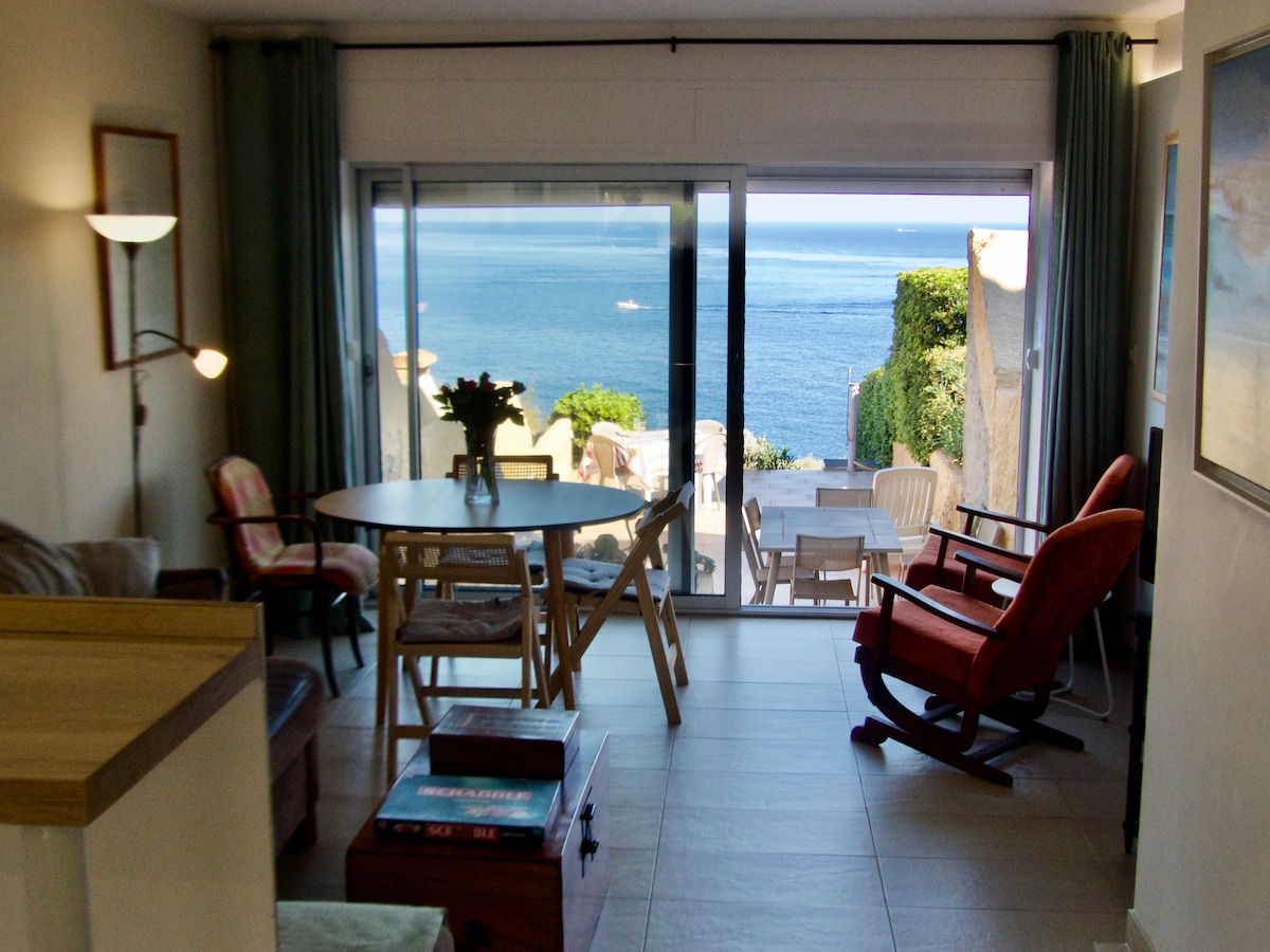 "Flofie a Banyuls" vous propose cet appartement Les pieds dans l'eau, spacieux et élégant. Ce dernier étage de 41 m2 climatisé avec loggia, offre une vue mer exceptionnelle à 2 pas de tous les commerces, de la plage et du port de Banyuls. Il peut accueillir 2/4 personnes avec une chambre (lit double), un canapé-lit , une cuisine ouverte sur le séjour, une salle d'eau, une machine à laver le linge et la vaisselle. Sophie et Floréal