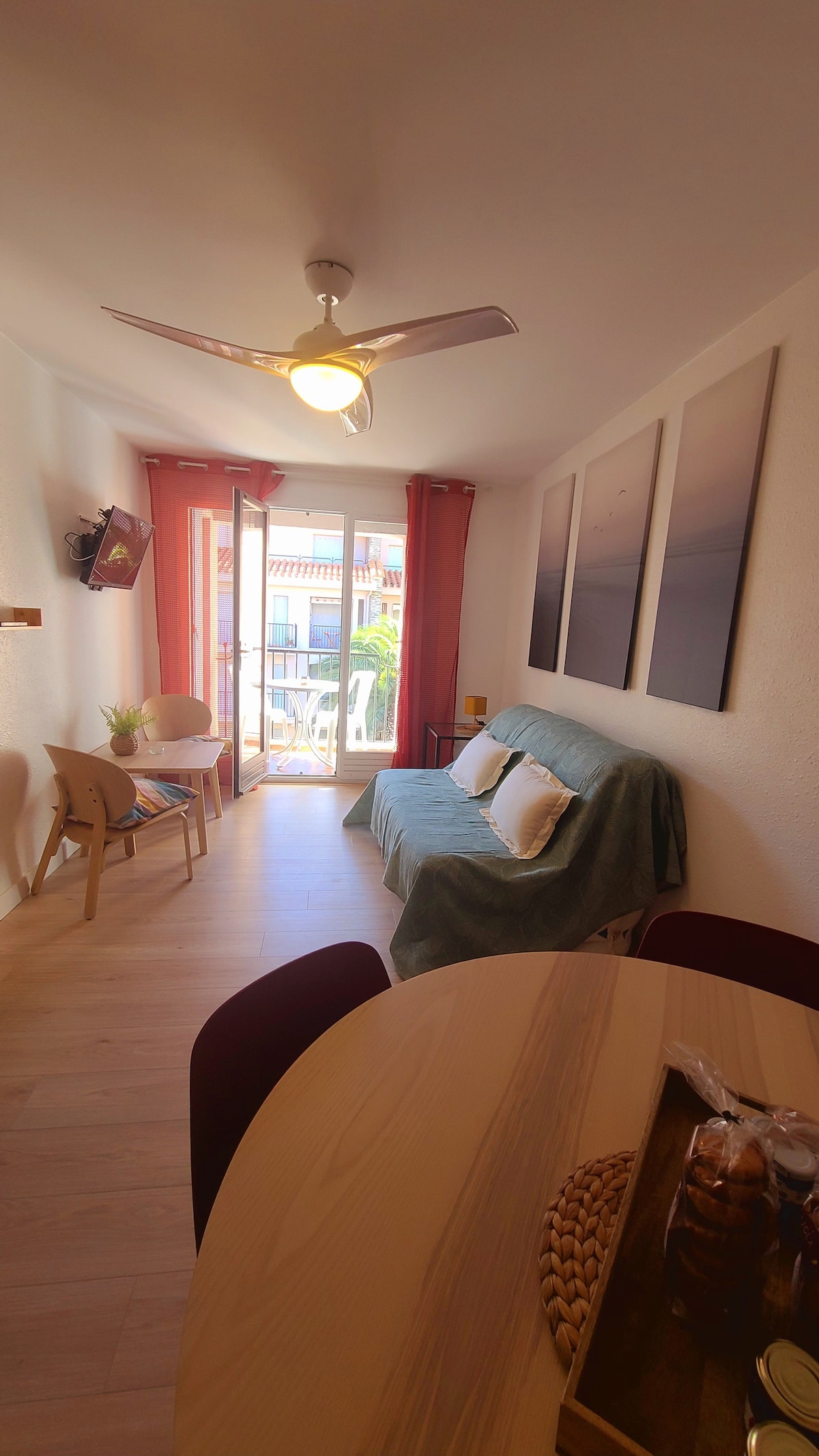 Je vous propose, au centre d'un village coloré de l'accent catalan, un appartement à la décoration chic pour passer des vacances près de la mer. Il est près des activités comme le petit train jaune, magasins, gare SNCF, des bus, place de parking etc. Nous avons aménager cet appartement pour que vous pussiez passer de bonne vacances. Nous avons aménager la terrasse afin que vos apéros soient agréables, toutes les pièces sont climatisés et nous avons même une cafetière qui vous attend.