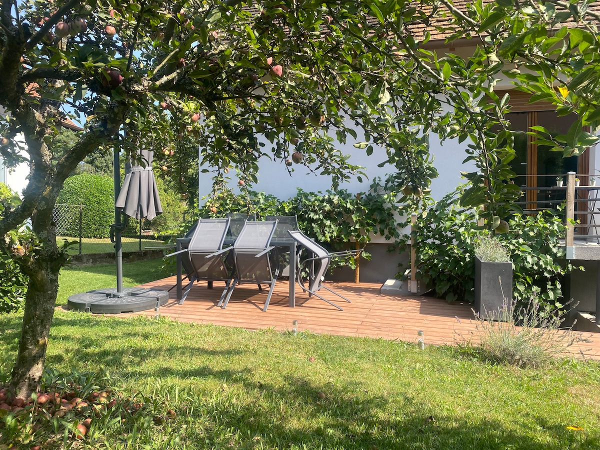 appartement 65 m², 4 personnes, 2 chambres , salle de bain avec toilettes. Une cuisine équipée avec tout le nécessaire. Un jardin privatif de 170m² et 1 place de parking privative. Vue sur toute la crête Vosgienne, idéalement placé , à 7 KM de Colmar au centre de l'Alsace. Pistes cyclables à proximité le long du canal. Les 1 ères pistes de ski sont à 1 heure de route. Europa-park , meilleur parc d'attraction au monde est à 35 KM. Toutes les commodités nécessaires à 5mn du logement.
