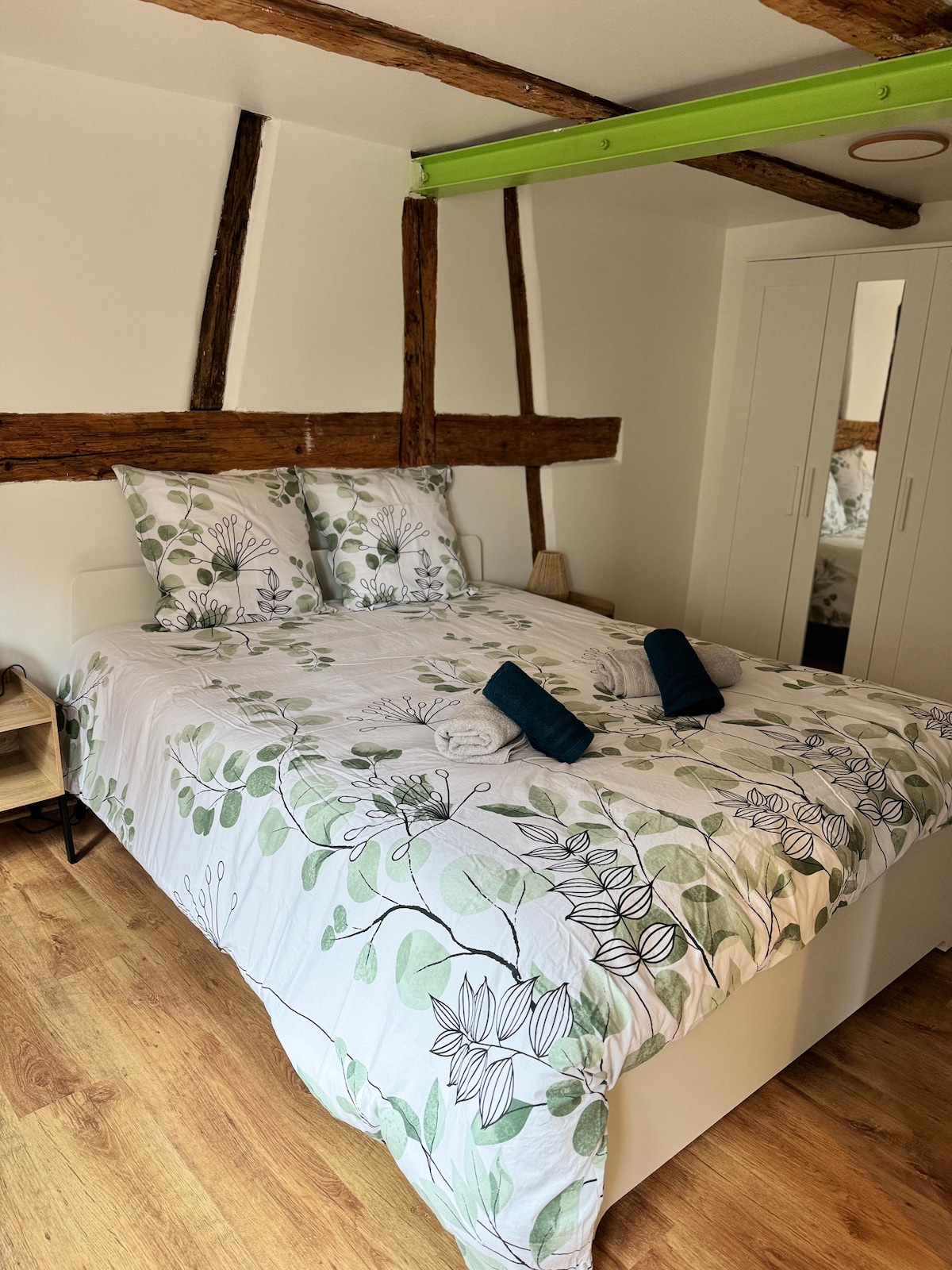 Les lits sont faits à votre arrivée et les serviettes sont fournies. Situé au calme au centre de Rouffach, avec son centre ville historique, sur la route des vins d’Alsace, au pied des vignes offrant de multiples possibilités de ballades en vélo ou à pied. Toutes commodités à 2 pas, restaurants de renommée accessibles à 5-10 minutes à pied. -Place de parking privative dans la cour fermée par un portail. -Belle terrasse au calme avec pergola -Terrain de Molkky et de pétanque (jeux à disposition)