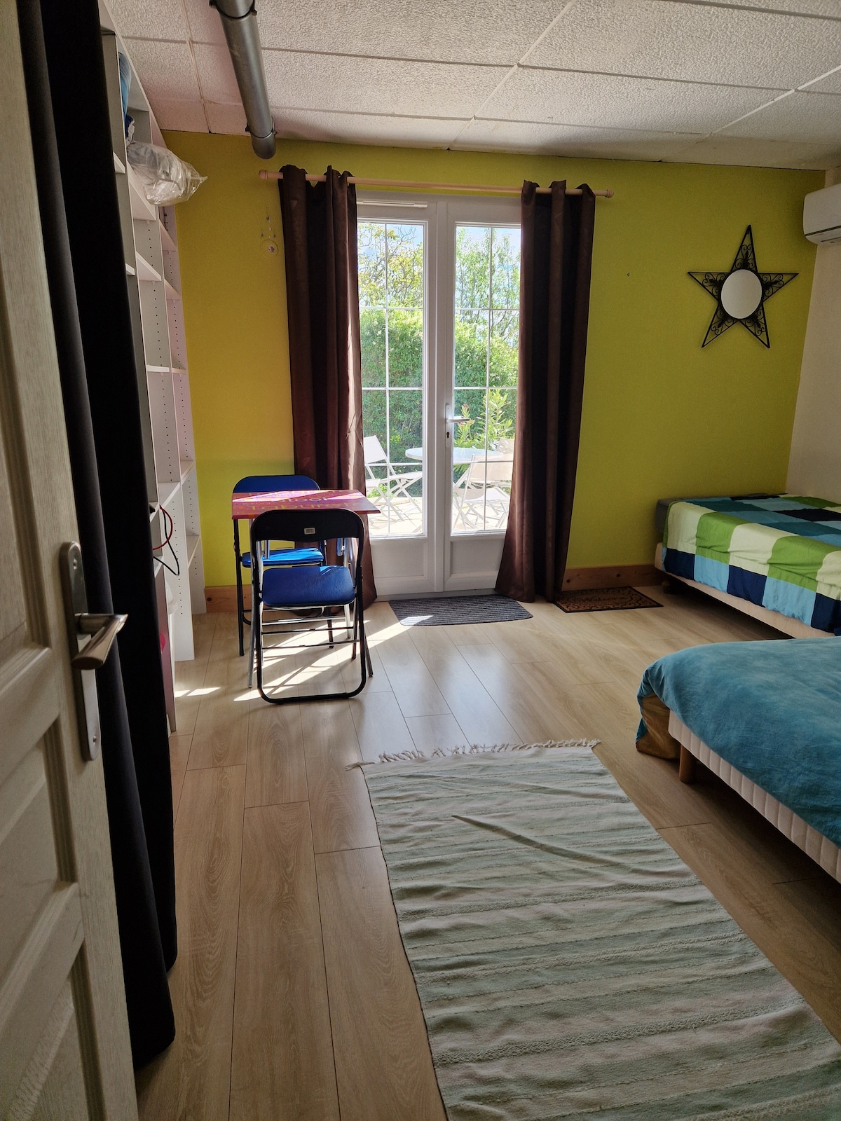 Nous proposons notre studio indépendant, que vous veniez pour découvrir le Gers ou pour raisons professionnelles . Ce logement neuf, disposant de tout le confort (cuisine, climatisation) vous permettra de profiter d’un séjour calme et paisible. La terrasse dispose d’une table. Le canapé peut être converti en lit 2 places. Anecdote : auriez vous deviné que ce studio était auparavant un container ? À noter que pour le moment, les extérieurs sont en travaux.