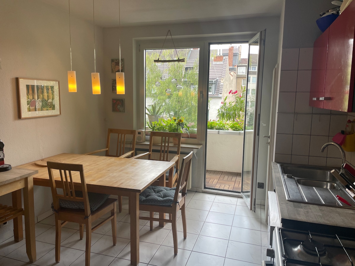 Toll gelegen zwischen Dom und Rhein in einer romantischen Gasse in der Kölner Altstadt befindet sich unsere gemütliche Wohnung. Die Wohnküche und die Terrasse liegen nach Süden zum traditionsreichen Ostermannplatz, auf dem das ganze Jahr über der Kölner Flair lebendig ist. Im Preis inbegriffen ist Reinigung und alle Steuern (MwSt. und die Kölner Kulturförderabgabe). The price includes housekeeping and all taxes (VAT and Cologne Citytax).