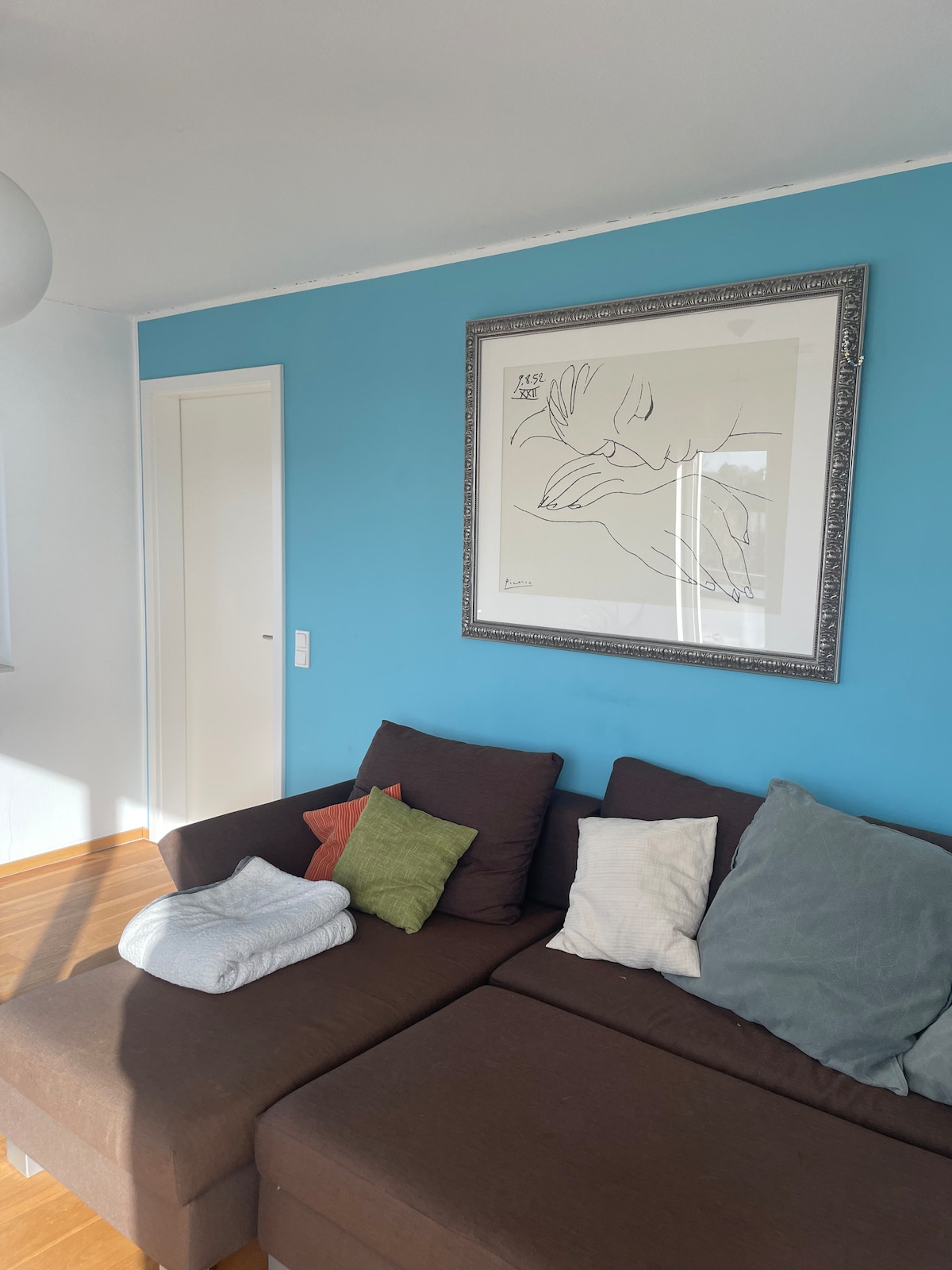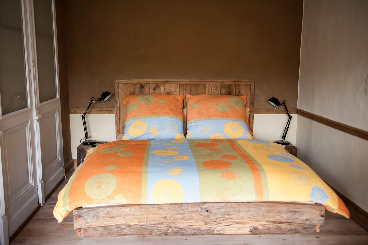 Dein gemütliches Zimmer liegt im ersten Stock unseres Hauses im ruhigen Klosterdorf Langwaden . Ein 2x2m Doppelbett mit Federkernmatratzen und bequeme Korbsessel sorgen für deinen Komfort. Du hast direkten Zugang zu deinem privaten Bad. Wald und Feld laden direkt vor der Tür zum Radfahren, joggen und entspannen ein. Wir liegen zentral zwischen Köln und Düsseldorf. Flughäfen, Messe und Museen sind schnell zu erreichen. Auf Wunsch servieren wir ein reichhaltiges Frühstück zum Preis von 10€ p.