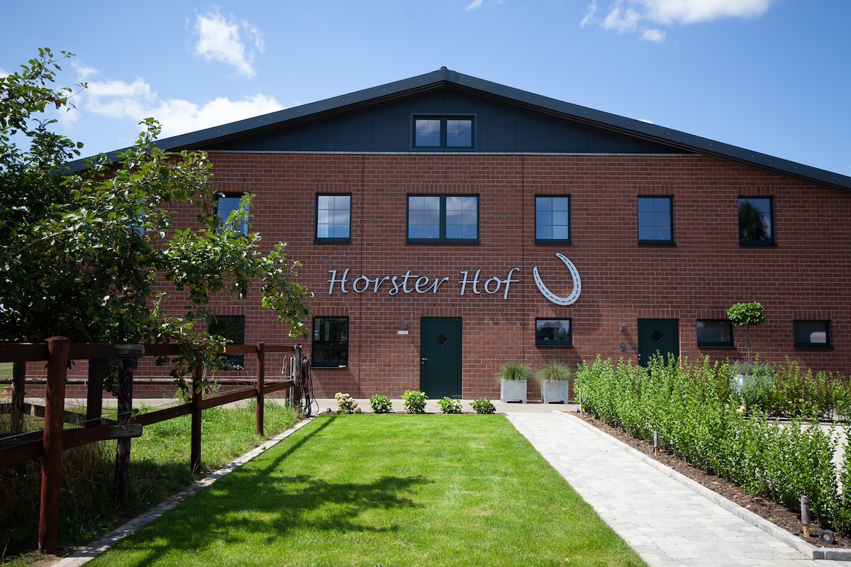 Ferienwohnung am Ponyhof mit 2 zusammenhängenden Schlafzimmern + Schlafcouch (Wohnzimmer) für bis zu 8 Personen. Komplett neu sanierte 90qm-Wohnung (+25qm-Lagerraum für Koffer etc). Über 30 nahe Freizeit- und Ausflugstipps (siehe Reiseführer oder website) Kinder-Reitschule auf dem Gelände: Pferdefreizeit und (Schnupper-)Reitunterricht für Kinder und Jugendliche bitte anfragen. Übernachtung und Unterbringung für Wanderreiter / Pferde.