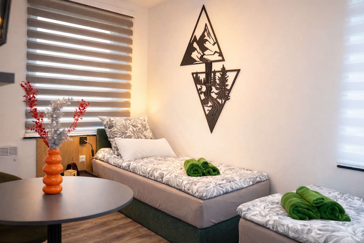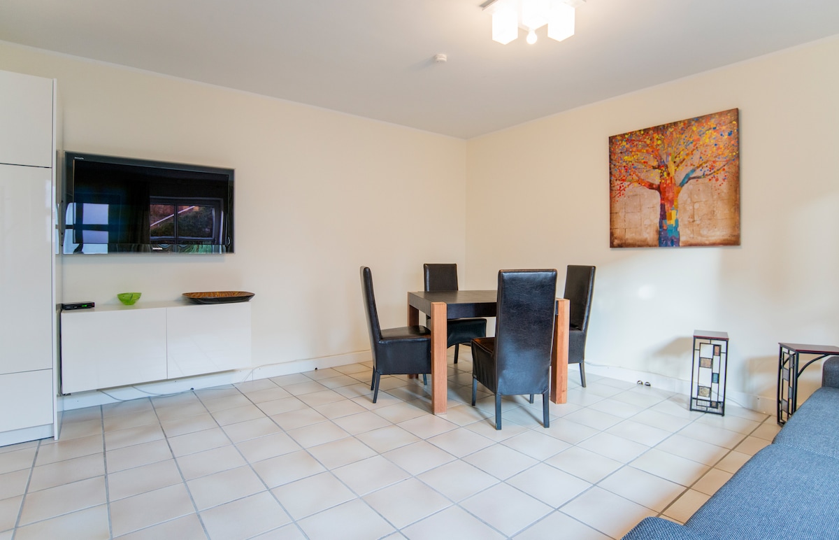 Basement apartment for 3 persons or small family in a quiet location. With enough space for longer stays! Equipped with modern interior, sauna & terrace! In our apartment you spend your vacation in a relaxed atmosphere. Whether you enjoy the sun on the terrace or relax in the sauna, well-being is our top priority! The apartment in the basement welcomes you on 50sqm with a cozy bedroom, small kitchen, modern bathroom and a private sauna.