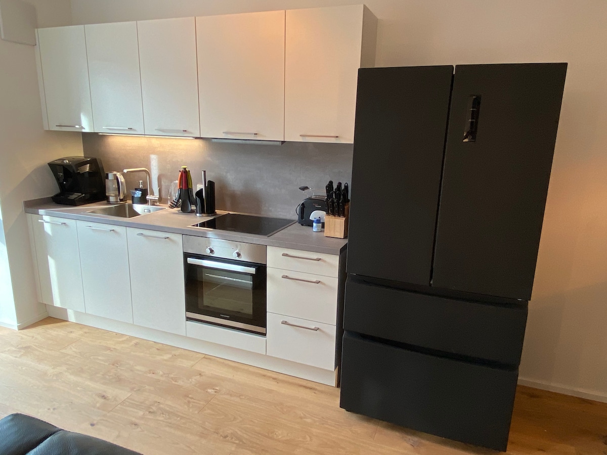 Sunny, exclusive 1-room apartment in Cologne city center for 1-2 people; open floor plan, underfloor heating, comfortable bed (1.40 x 2m), stylish living area, kitchen, high-quality built-in furniture; modern bathroom design with daylight / exclusive furnishings; high-speed WiFi up to 100 mbit/sec; elaborate lighting design 3 min. to the shopping streets, restaurants and bars on the doorstep, 800 meters to the cathedral, freeway A57 by car in 5 min. Bookings of 90 days or more on request.