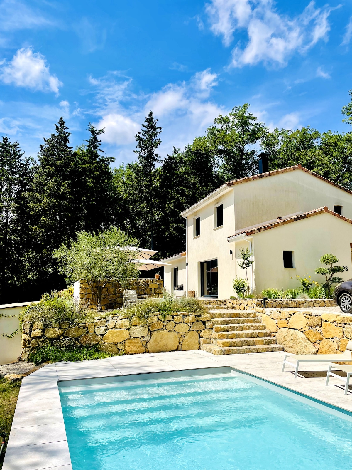 别墅很棒,配有游泳池和停车位