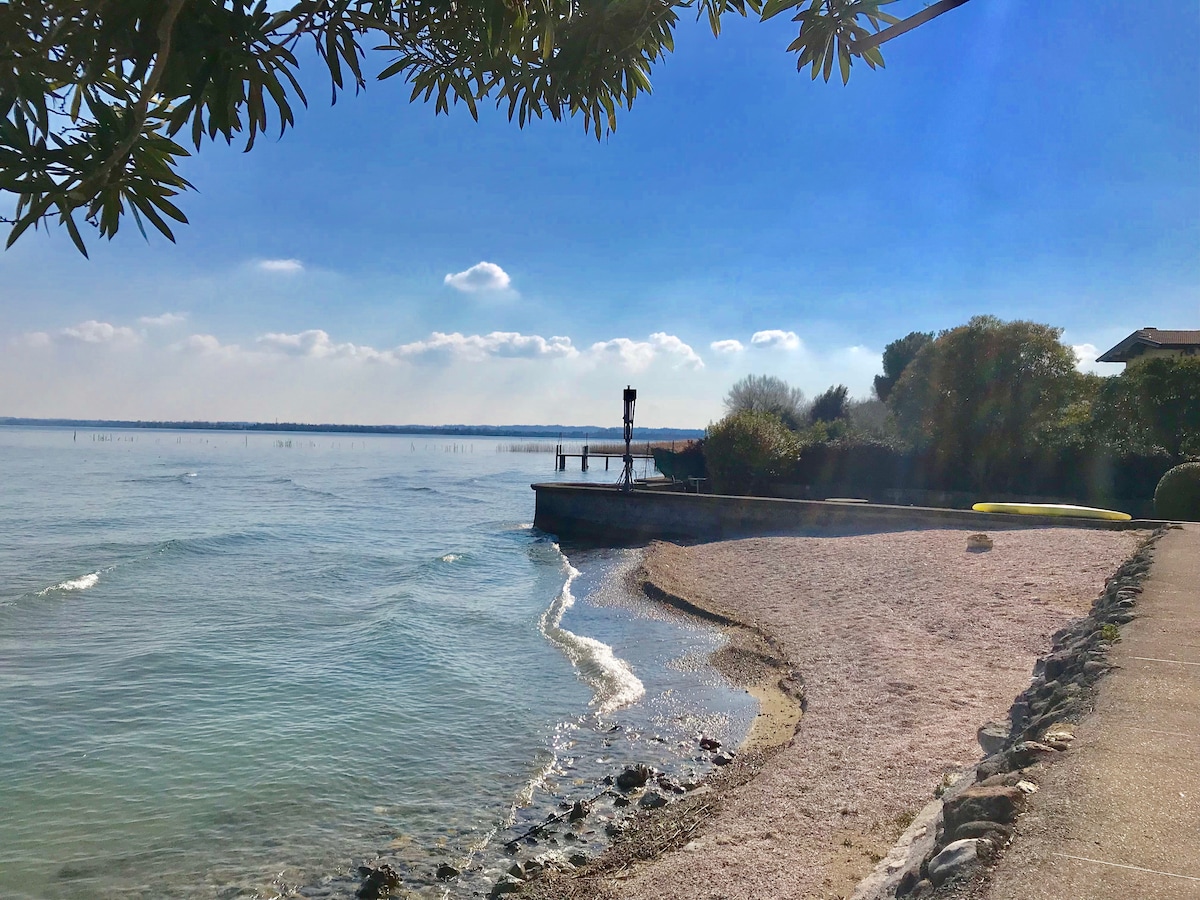 Если вы хотите единения с природой,то мой дом вам идеально подойдёт! Он расположен рядом с парком на берегу озера. Рядом исторический центр с замком, очаровательными ресторанами, термальным SPA. В отделке дома использовала много дерева, экологичные ткани. Дом максимально подходит для комфортного проживания современного человека. Дом расположен в шикарном охраняемом комплексе с тремя бассейнами. От дома легко доехать до Вероны, Милана, Венеции на Всемирные выставки, концерты и экскурсии.