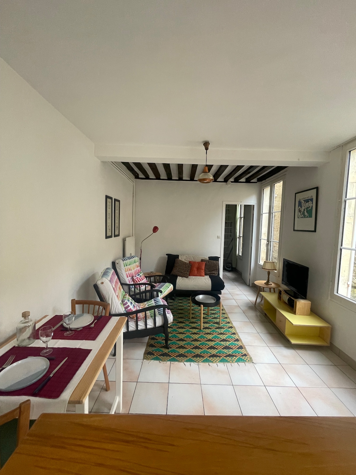 Dans le coeur historique de Caen, à coté de la mairie et de l'abbaye aux hommes, appartement ancien entierement renové de 65m2, RDC lumineux sur cour et jardin, comprenant une cuisine ouverte entièrement équipée, salon avec canapé convertible, chambre lit double, salle de bain avec douche et baignoire. Une terrasse plein sud avec vue sur un jardin clos et ensoleillé, parking possible dans la cour. Télévision, wifi, table et fer à repasser, sèche cheveux, linge de toilette et de lit fourni.