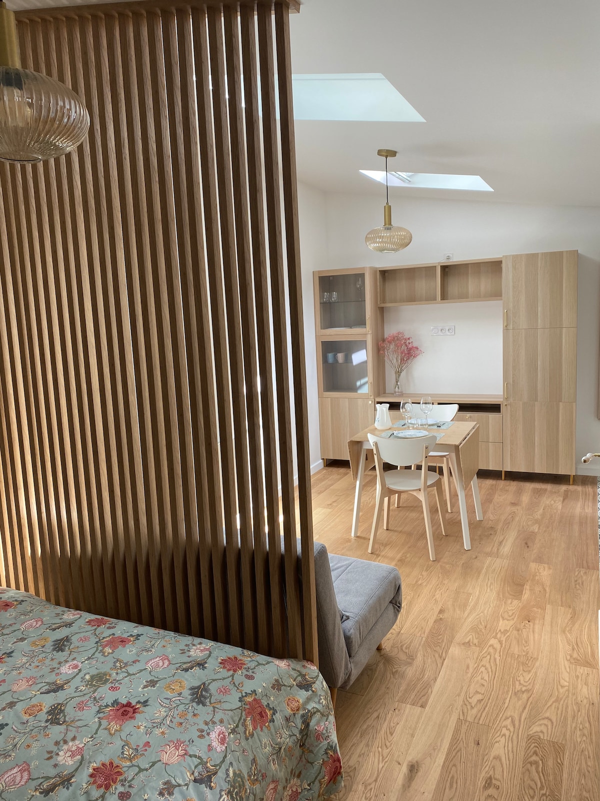 Superbe studio avec sdb privative, refait à neuf, pour 2 personnes Le logement indépendant dans une rue très calme est à 2 minutes du tram T1 VILLAGE et du Métro 13, ainsi que de nombreux commerces. Parking gratuit dans le quartier(disque requis) Cuisine équipée. Canapé-lit 160/200 (2 matelas d' 1 personne) (tiroir lit) Wifi, télévision par internet Petite terrasse privative. Entrée extérieure commune . Proche des sites touristiques : Montmartre, Ch.Elysées, Tour Eiffel, Stade de France