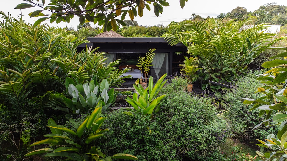 A small, charming, comfortable and cozy retreat in a calm and beautiful country setting overlooking a scenic and peaceful valley of pastoral landscapes, lots of birds, broad skies and panoramic views 1 hour from Medellín. A haven to forget about your life in the city. A perfect stay for couples or friends searching for rest or intimacy. It is also ideal for creators, digital nomads or mistics looking for inspiration and undisturbed solitude to pursue their arts, crafts and paths.