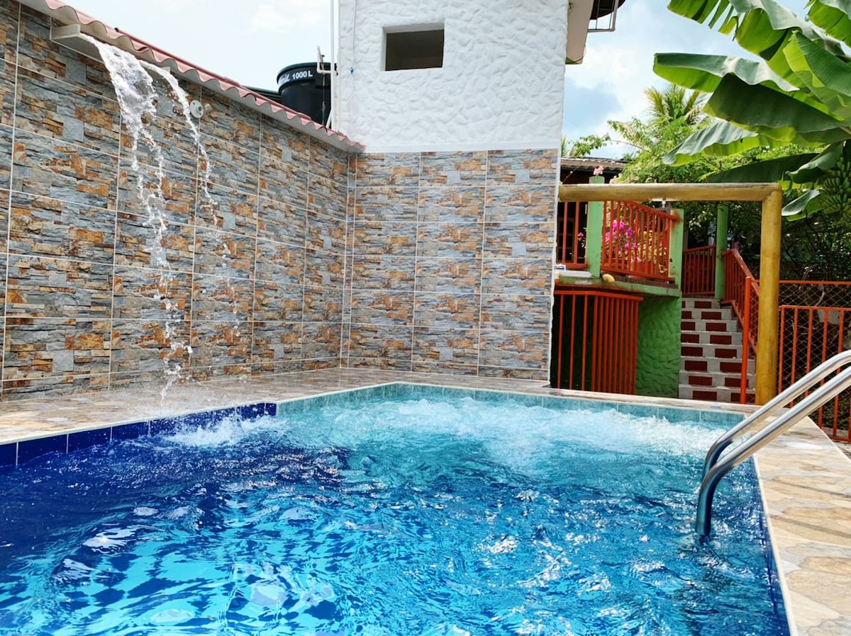 ▶️Casa privada, ambiente familiar, piscina privada 1.20mts de prof, 3x4 mts, hidromasajes agua fria. ▶️Mínimo 4 hasta 10 personas para hospedar. ▶️Tres habitaciones baño privado, televisor, nevera. ▶️Canto de animales, como gallinas, pájaros. Kiosko con hamacas, rana, juegos de mesa. ▶️Clima variado. Traer repelente de zancudos. Se comparte entrada y salida de carros con anfitriones. ▶️Queda a 200 mts de la vía principal, pueden haber ruidos de motos y carros. ▶️Atendido por sus propietarios.