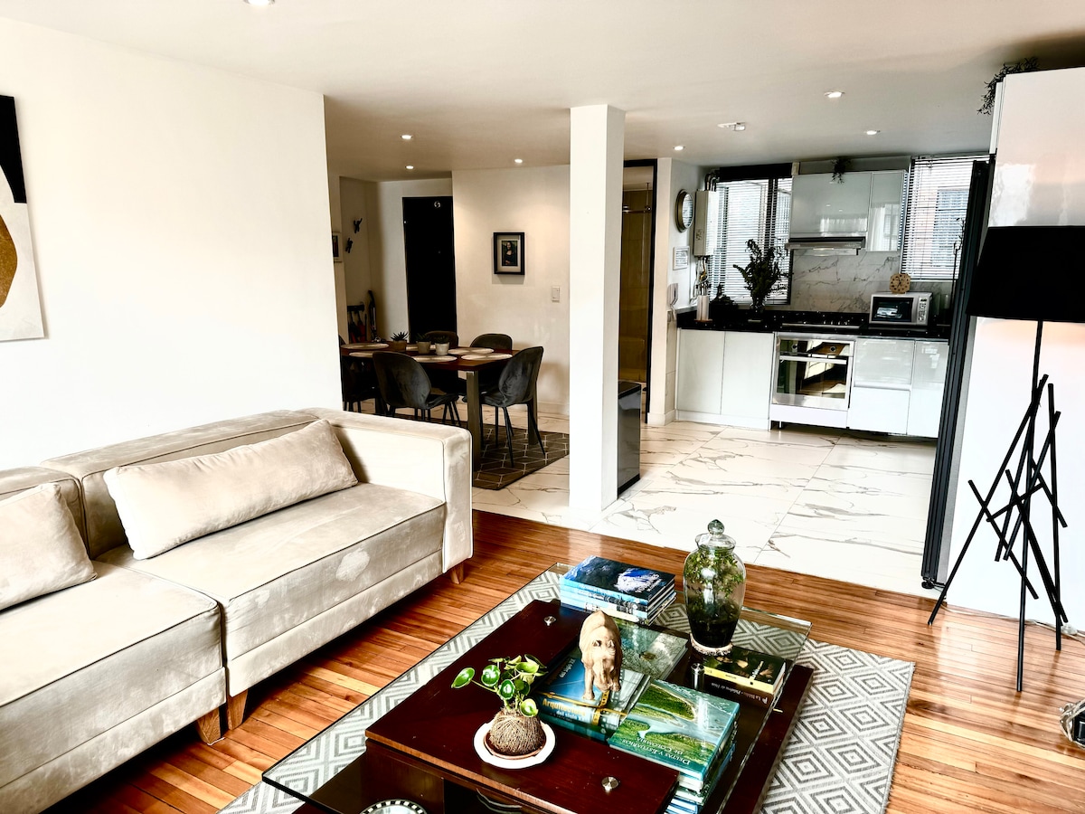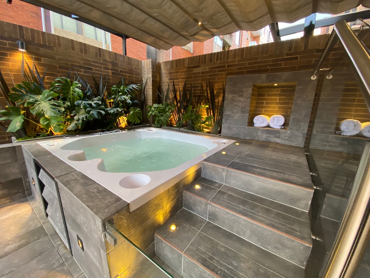 Live Bogota in this Luxury, new hotel-style ! This 2 Bedroom+ 2 Bathrooms+1 sofaBed+ private Jacuzzi Spa with 65” tv in the spa + epson laser projector CINEMA! centrally located in the prime area Chico , short walk from restaurants and shops. Located within 1 mile to park 93, this 5*Hotel-Style Suite brings you to live Bogota the right way, work or play, decoration a unique design luxury apartment, great vibe with a 190sqft private terrace! Just for you! Fiber Wi-Fi and 1 parking are included.