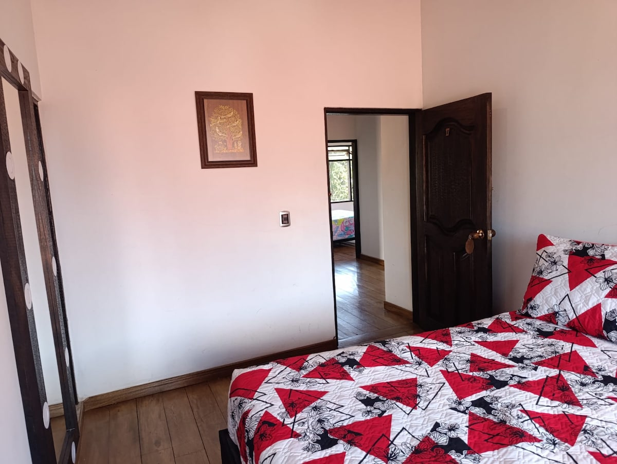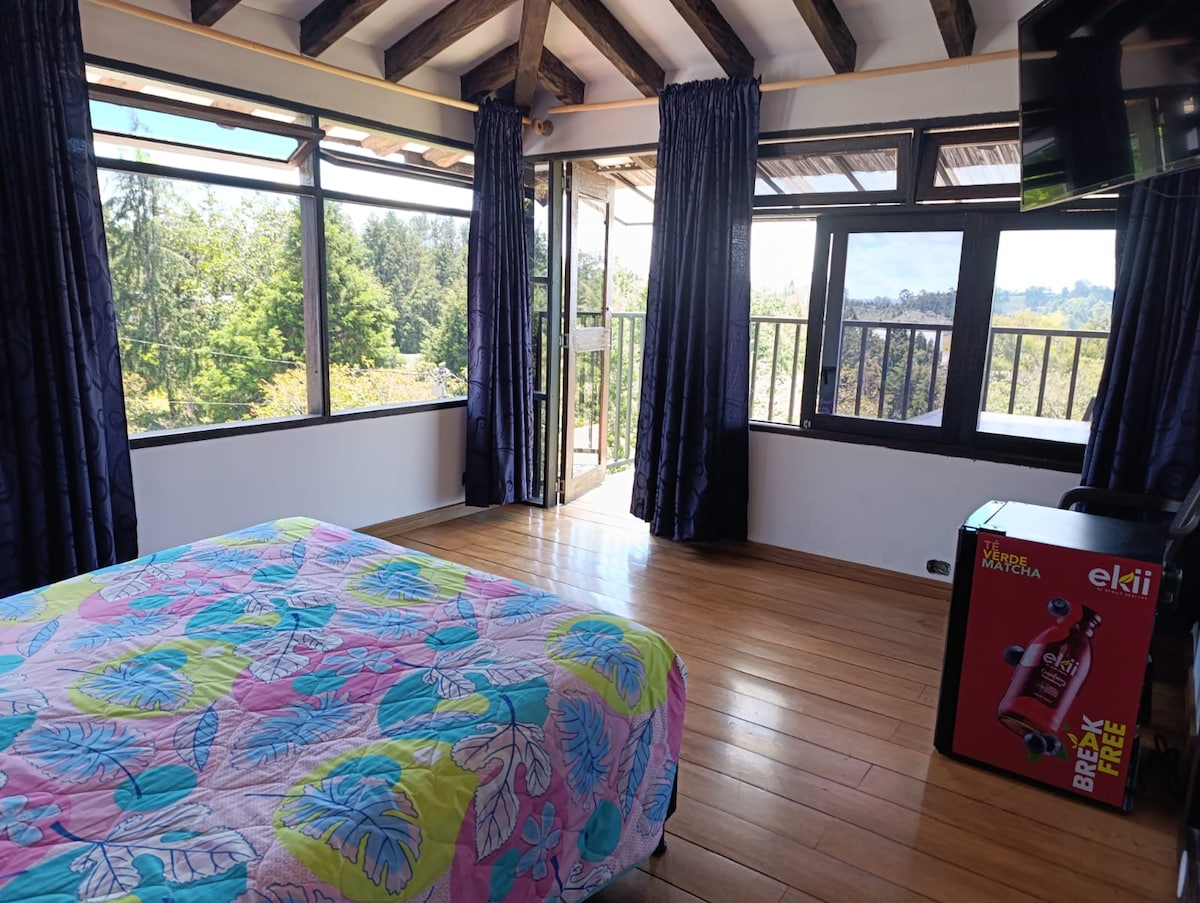 Habitacion privada en hostal con baño compartido, vistas a la ciudad, espacio campestre y natural en donde encontrarán zona de hamacas, piscina, área de coworking, zona de juegos, bar, area de BBQ y reserva directa de todas las actividades de aventura que se se pueden practicar en la region.