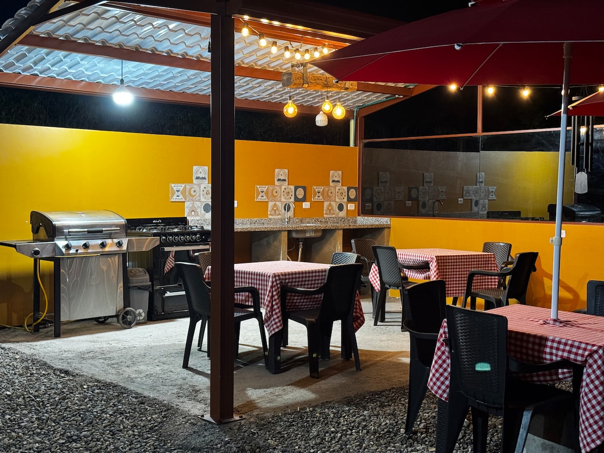 TE INVITAMOS A ESTRENAR NUESTRA CABAÑA! Rodéate de naturaleza y confort, en nuestra moderna cabaña en el hermoso pueblo de Jardin Antioquia. Estamos a 8 minutos del parque principal, cerca del hotel La Valdivia. Contamos con un río dentro de la propiedad en el que puedes refrescarte y respirar aire puro, 2 habitaciones, cada una con baño, la primera habitación cuenta con 1 cama Queen y dos camatarima sencillas y la segunda con 2 camas dobles y 1 camatarima sencilla. Contamos con cocina dotada.
