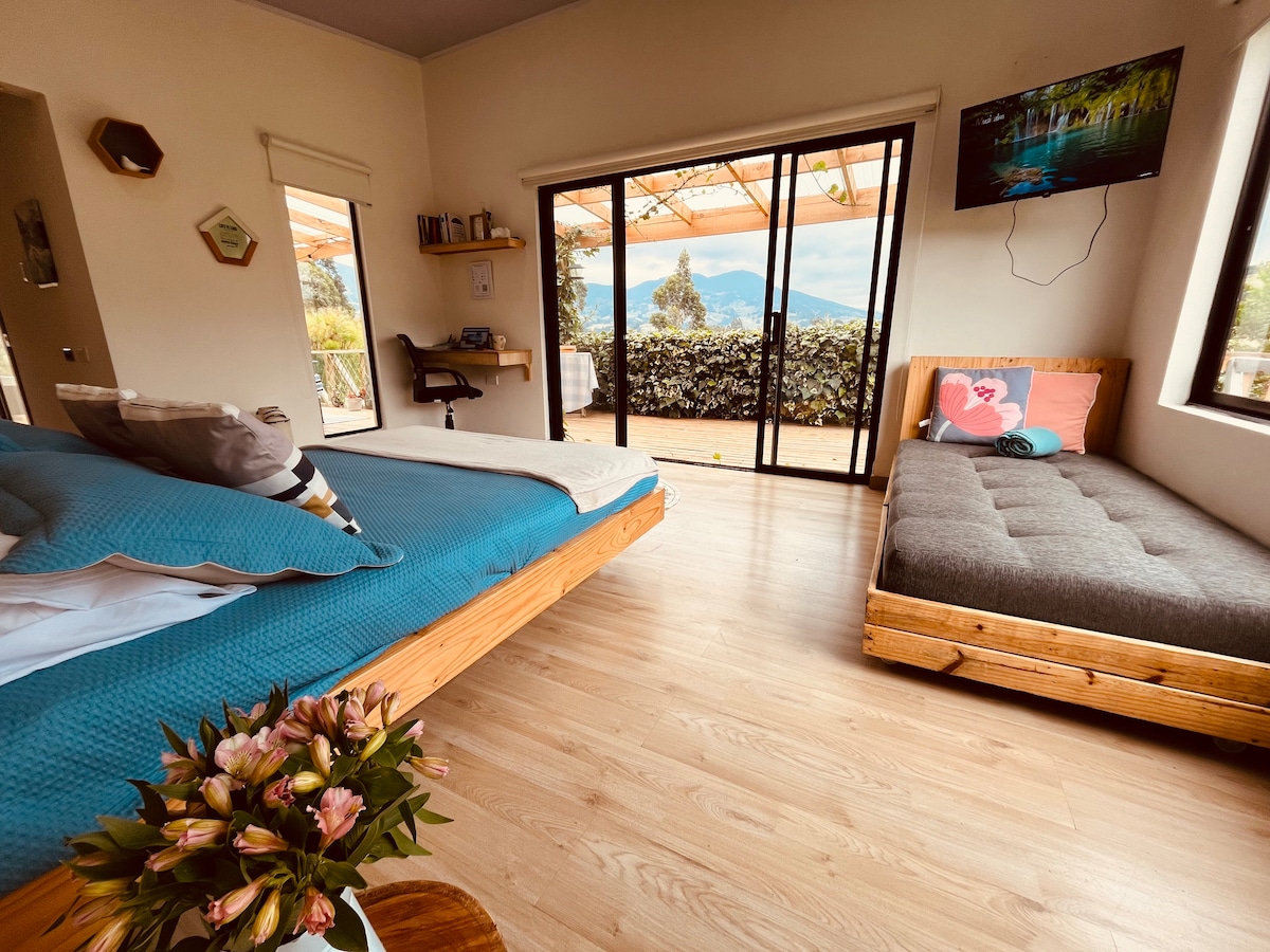 Our concept is privacy and comfort in the middle of nature, each room has a high standard king bed for your comfort, all rooms have a direct view of the lake, balcony and private bathroom; the jacuzzi located at the top of the mountain under the imposing eucalyptus trees . You will enter to the house through the roof, to findh a wonderful view of the lake, we have .created tailor-made experiences, traditional cuisine, a chef, water activities, and our spa. Paddle boards and canoe are included