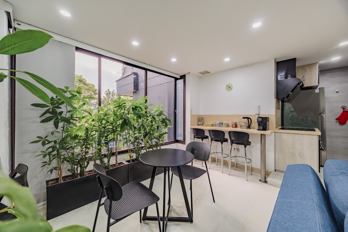 Located on Laureles, among private homes and quaint shops, Alori’s 5-story facade beckons you with its warm brick and wood exterior accented with greenery and private balconies. Reservation includes 1. Light continental Breakfast 8-9 am. 2. Concierge service 24/7 3. Virtual Bilingual Turistic Guide 24/7 4. Airport transportation to Laureles (Building) 5. Spa ( jacuzzi and sun bath) 6. Fitness Gym 7. Limited Insurance 8. Private Parking 9. 1 Museum Pass or Dance Class