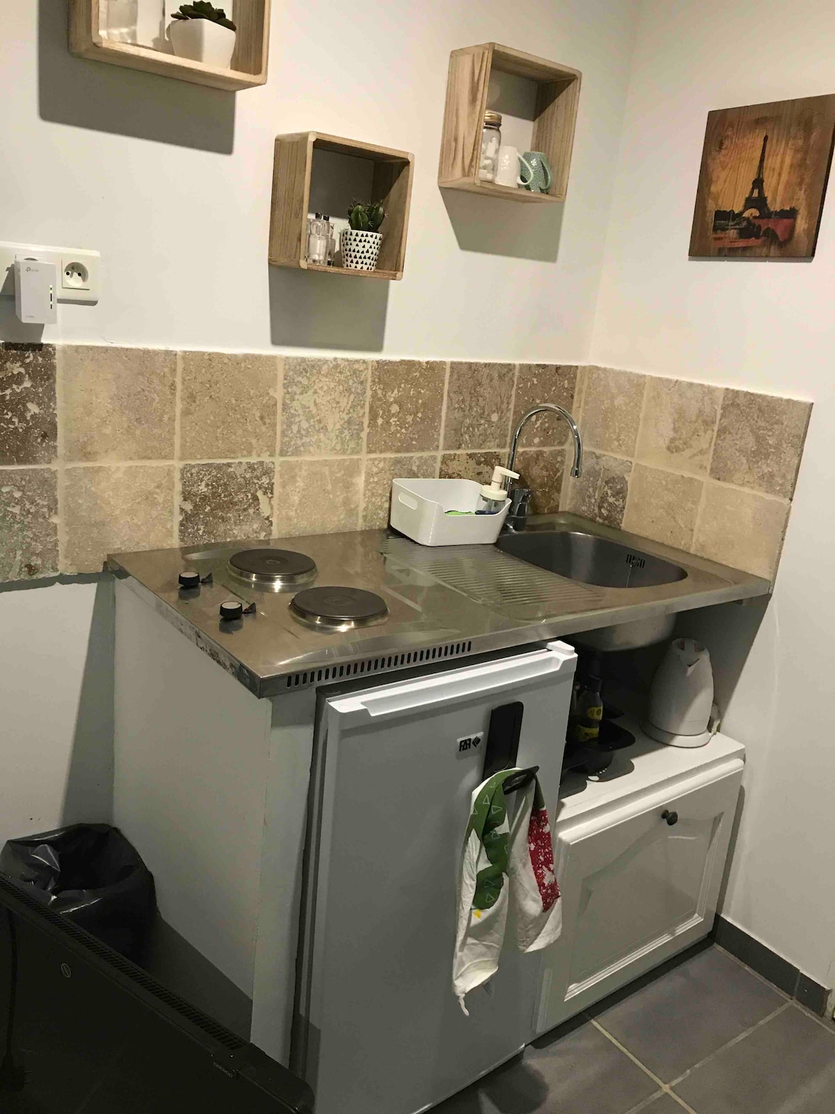 Charmant petit studio dans un petit village ou il fait bon vivre. Un studio neuf tout équipé : wifi gratuit, Douche, WC , TV, kitchenette toute équipée, ustensiles, frigo micro onde plaque, climatisation ... Entrée et accès sans contraintes parking pour 2 voitures à votre disposition, un parking fermé et sécurisé avec contrôle vidéo. Capacité d'accueil jusqu'à 4 personnes +1bébé le studio est NON FUMEUR, Un jardin et table a votre disposition Je vous souhaite BIENVENUE, WELCOME.