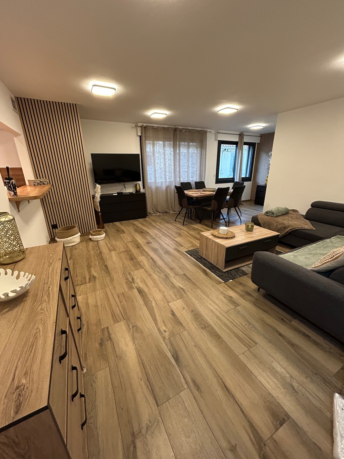 Logement, situé en centre ville de Narbonne, dans un bâtiment Haussmanien au 1er étage avec ascenseur, à 3 mins à pied de la gare. Cuisine tout équipée ouverte sur le salon. Chambre spacieuse de 24m2 avec bureau, composée d'un lit double (couette, oreillers et draps inclus). Le nécessaire de salle de bain vous sera mis à disposition (serviettes, gel douche, shampoing, sèche-cheveux). La wifi ainsi que décodeur TV sont disponibles dans le logement. Lave-linge et sèche-linge à disposition.